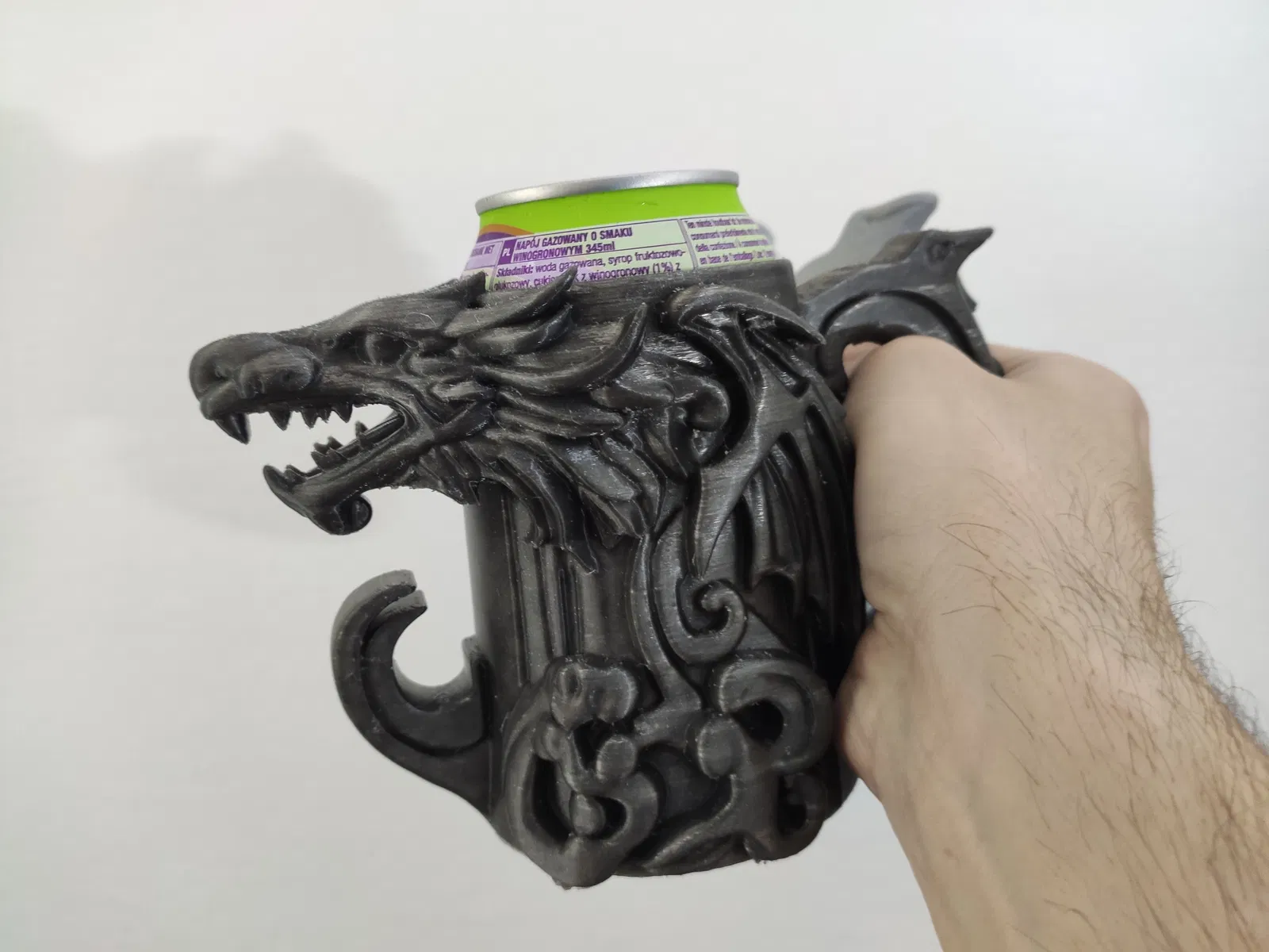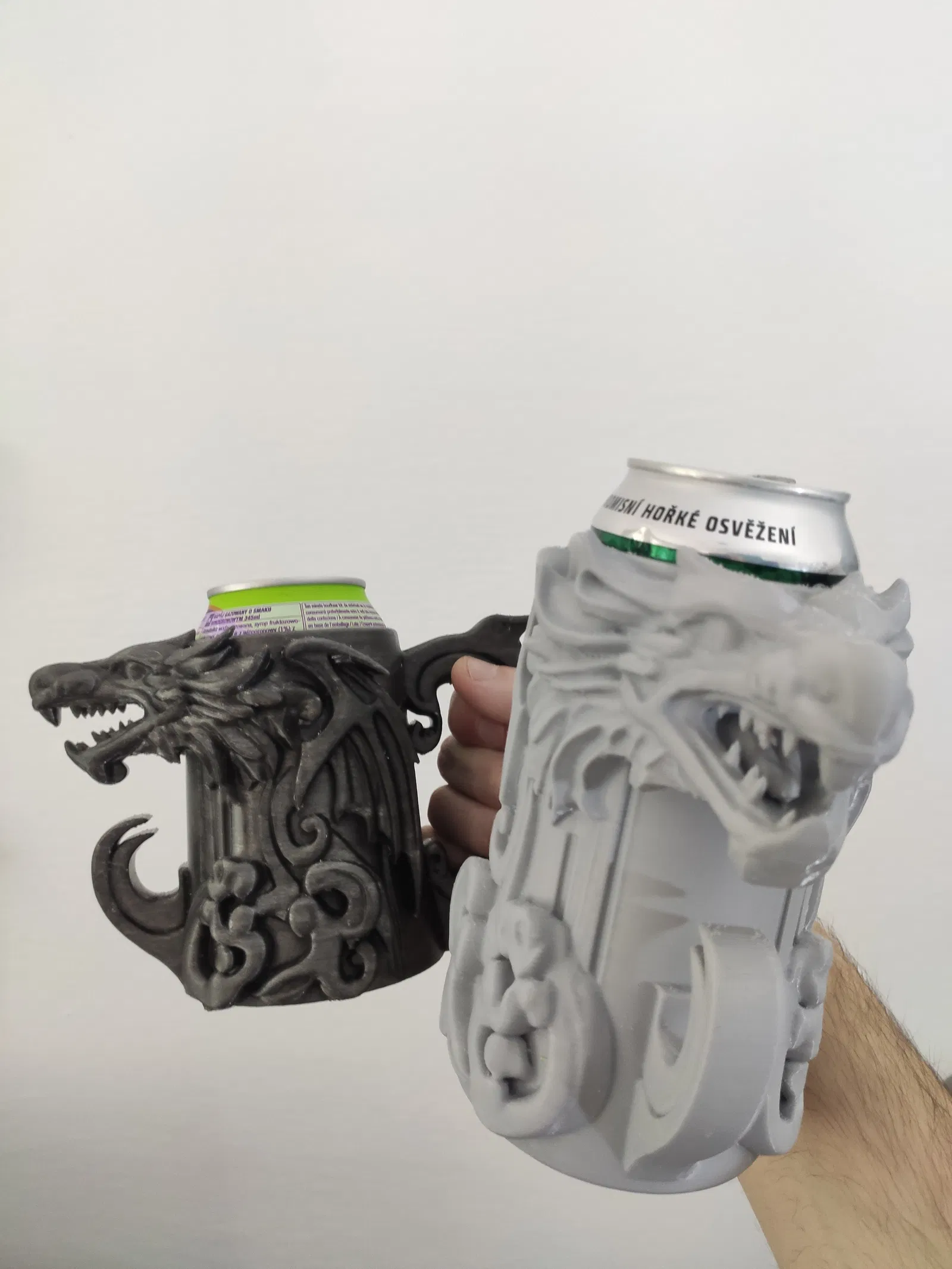 Cái giữ lon hình rồng, dùng được cho cả lon 0.5L (EU) và lon 12oz (US). Có hai tùy chọn file cho bạn lựa chọn. In bằng PLA, lớp 0.2mm. Lưu ý cẩn thận khi gỡ phần răng rồng nha anh em!