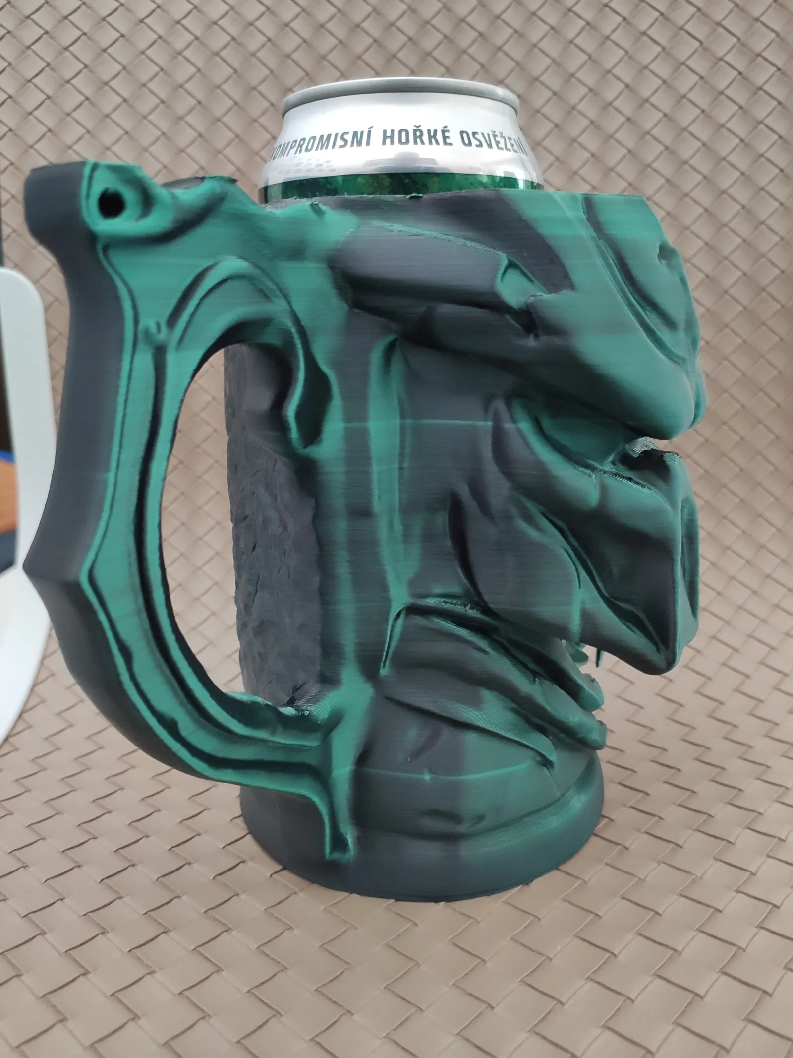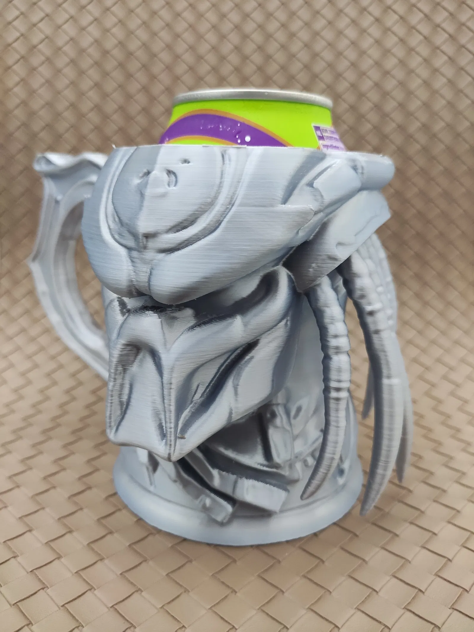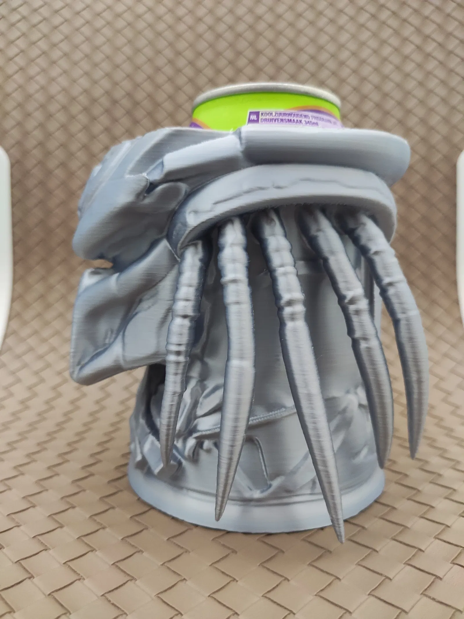 Chân cắm giữ lon kiểu Predator, phù hợp cho cả lon dài 0.5L châu Âu và lon 12oz (355ml) của Mỹ. Có hai tùy chọn file in cho từng loại lon. In upside down để có kết quả đẹp nhất, đặc biệt là phần tóc Predator.