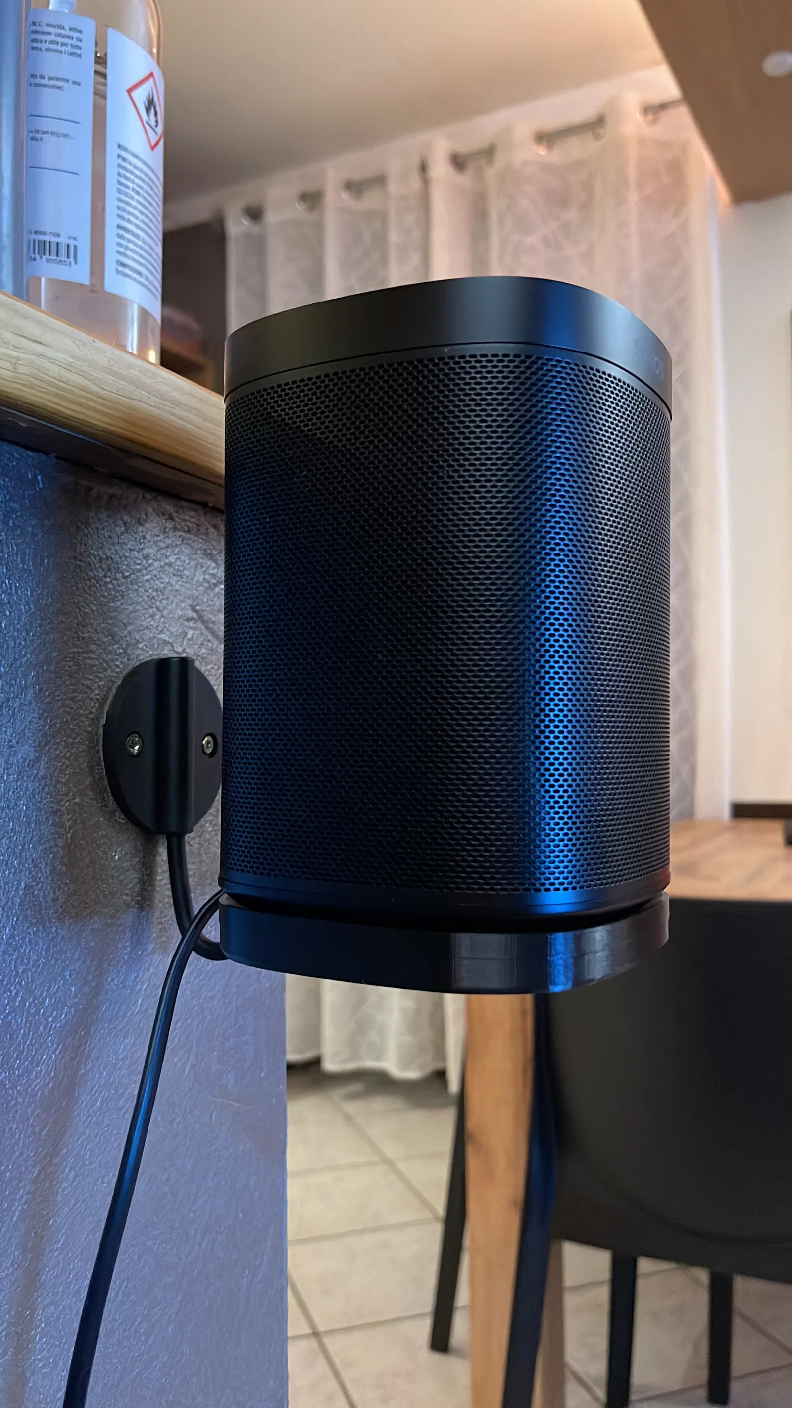 Giá treo loa Sonos One thế hệ 2, có thể dùng móc treo JBL với trục 6mm. In bằng PETG hoặc TPU để khử rung tốt. Thiết kế ôm sát loa, anh em có thể tùy chỉnh theo nhu cầu.