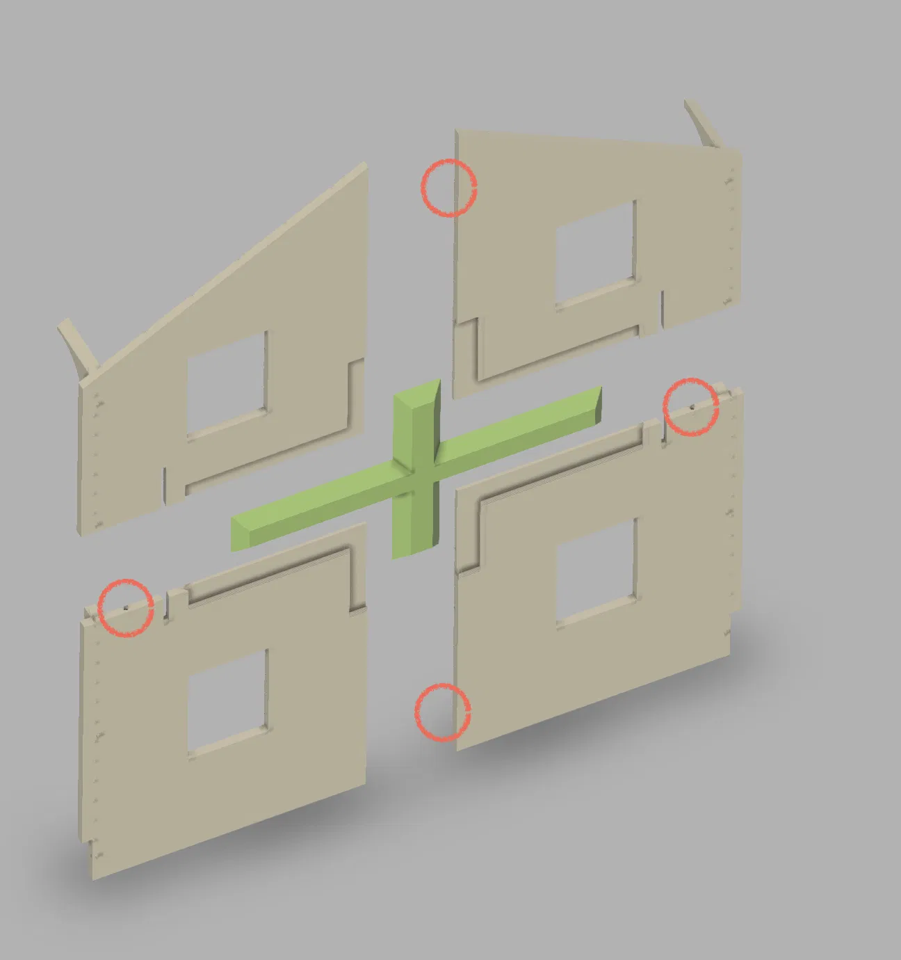 - Sau khi mọi thứ khớp đúng, dán các thanh chống góc dọc bên trong