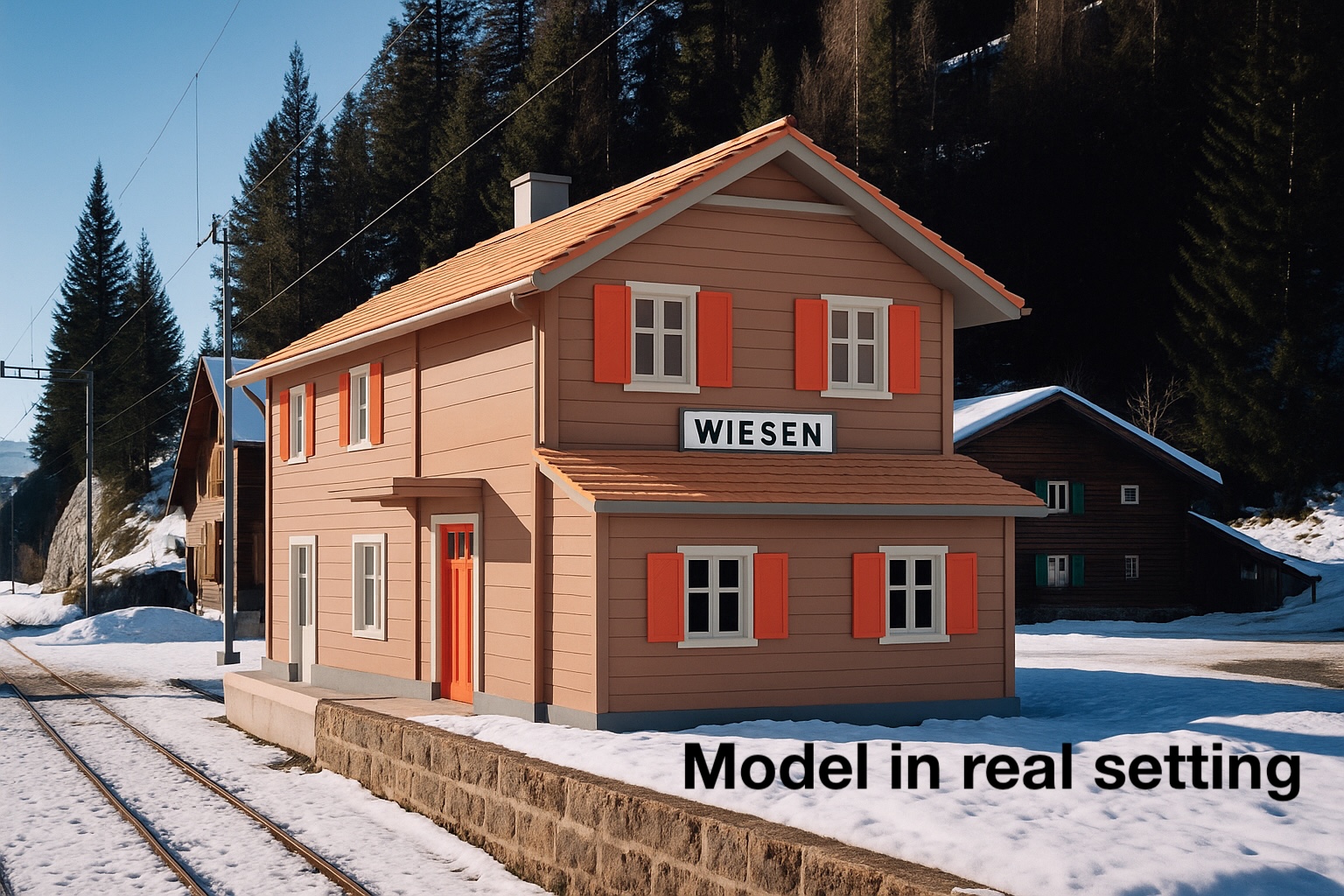 Mang một chút không khí núi Thụy Sĩ đến với mô hình đường sắt của bạn với nhà ga tỷ lệ G (LGB, 1:22.5) chi tiết này. Lấy cảm hứng từ nhà ga Davos Wiesen mang tính biểu tượng trên tuyến Rhätische Bahn nối Davos và Filisur, mô hình này nắm bắt được tinh hoa kiến trúc núi cao — mộc mạc, tiện dụng và đẹp mắt. Mặc dù không phải là bản sao chính xác, nó vẫn giữ đúng phong cách của bản gốc, với một vài chỉnh sửa sáng tạo để đơn giản hóa việc in ấn và lắp ráp.