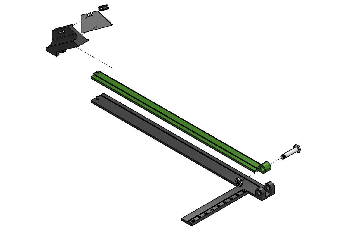 Để lắp ráp: Nối phần Đế với phần Cần gạt, rồi gắn bu lông và đai ốc vào. Bạn nên dễ dàng di chuyển cần gạt lên xuống. Cho lưỡi dao vào phần Thanh trượt và khóa nó lại bằng phần đính kèm Lưỡi dao.