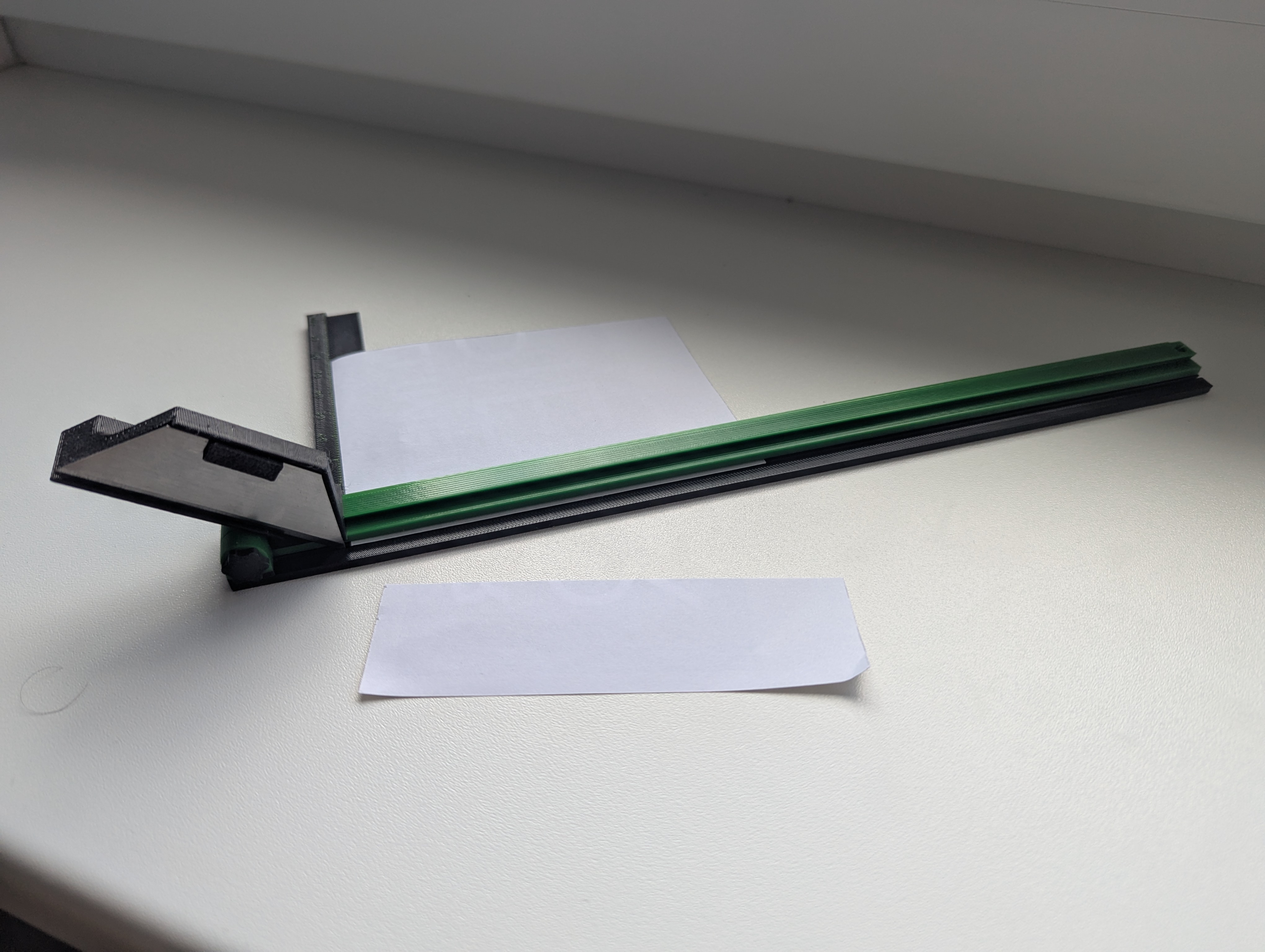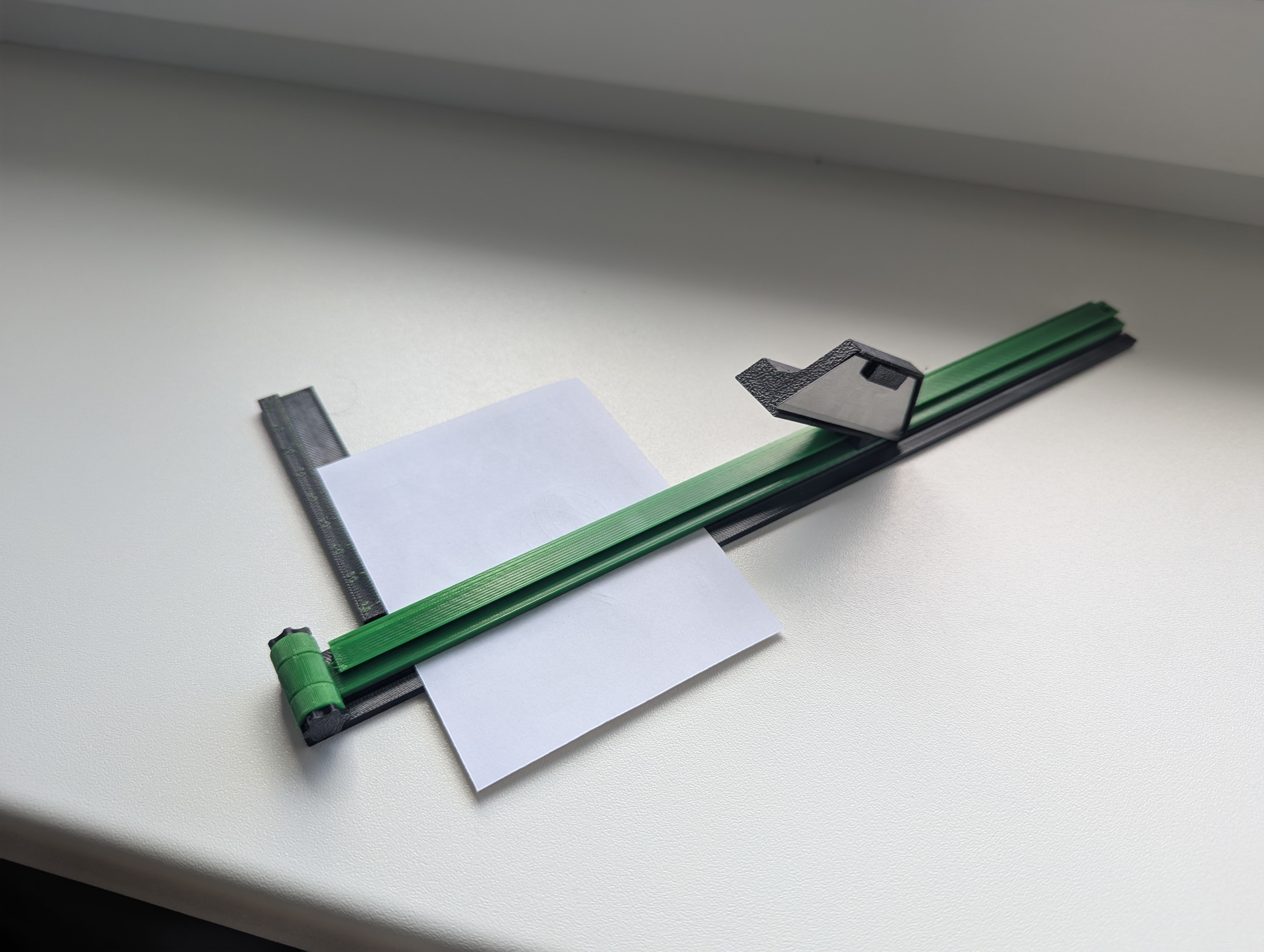 Một dụng cụ đơn giản để cắt giấy thẳng với chiều dài lên tới 23 cm. Dễ dàng lắp ráp và sử dụng, không cần support khi in. Phù hợp để cắt giấy hoặc giấy nhám trong xưởng.