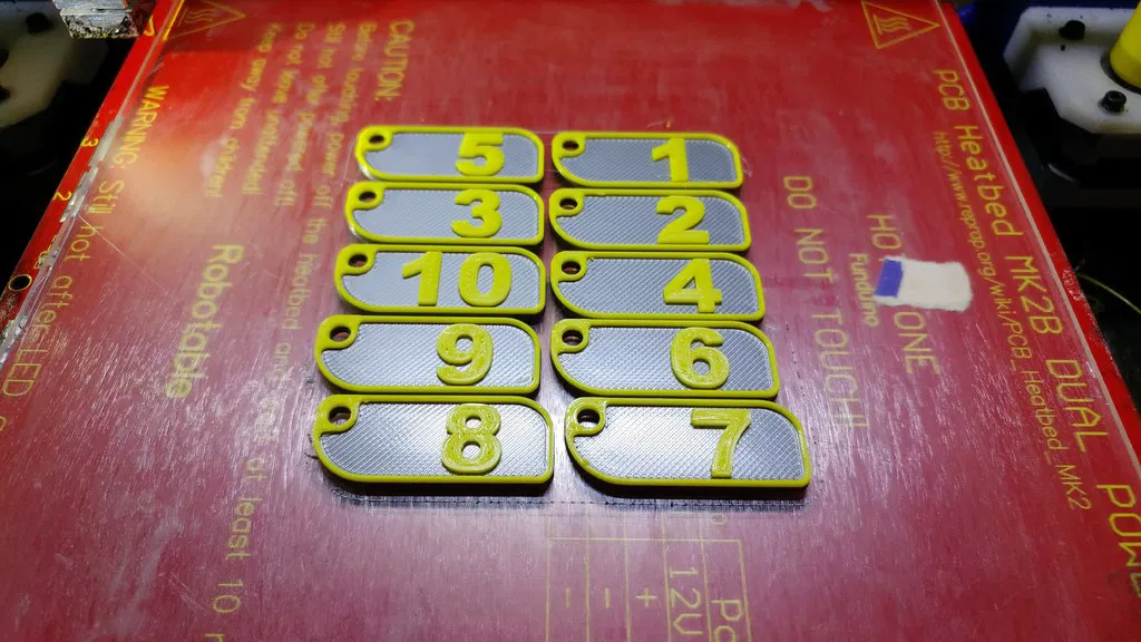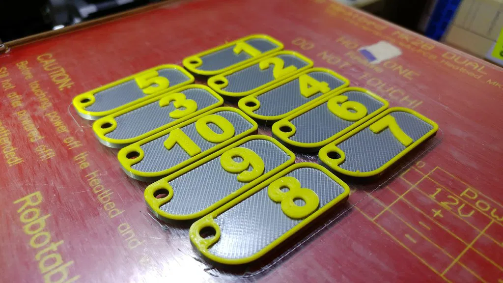 Bộ file móc khóa đánh số 0–10 để phân biệt các chìa giống nhau. Có kèm file Fusion 360 để bạn đổi text (chỉ cần double click sketch đầu). Gợi ý print: Prusa Mk1, 0.1mm, infill 15%, không support.