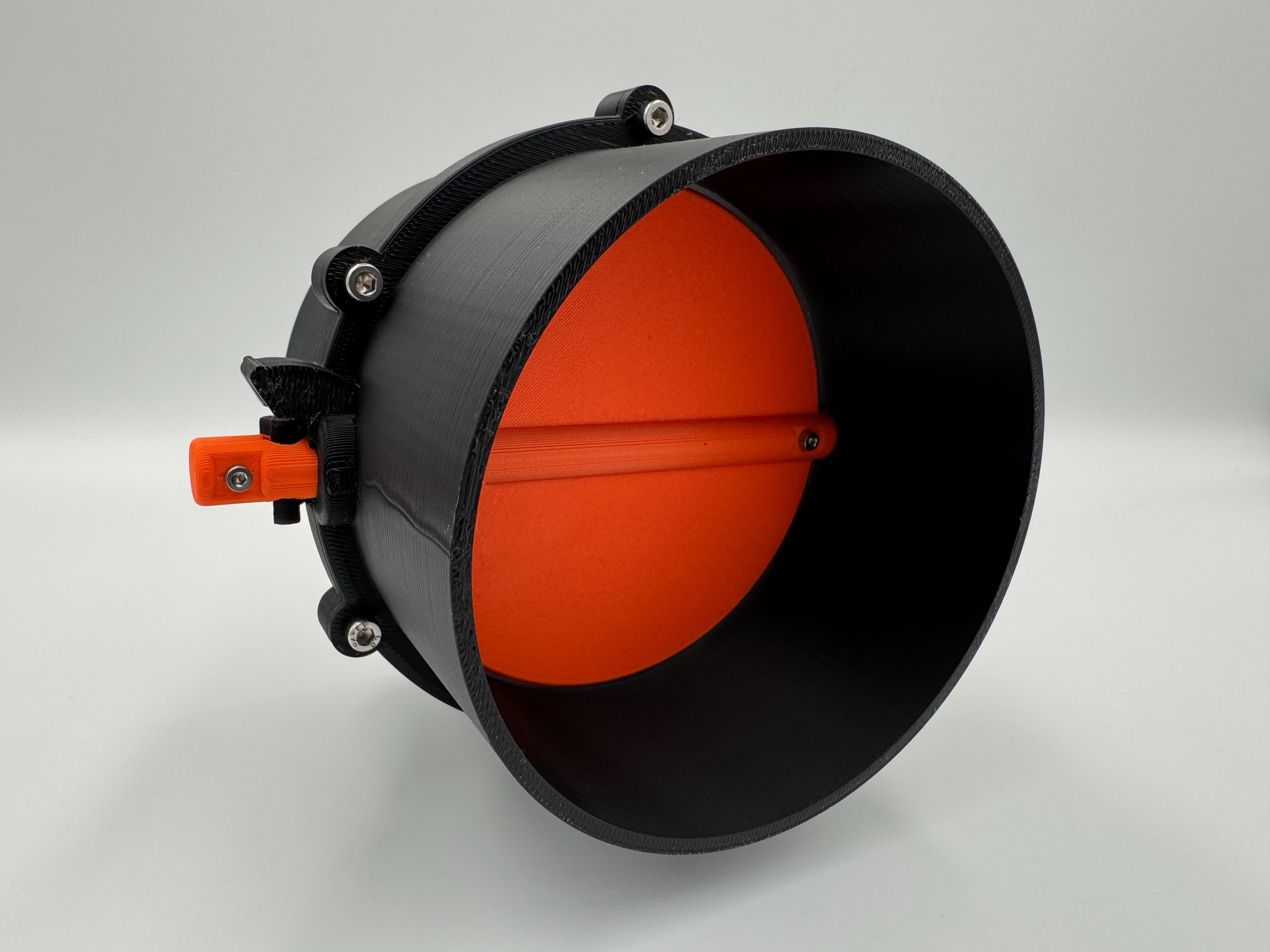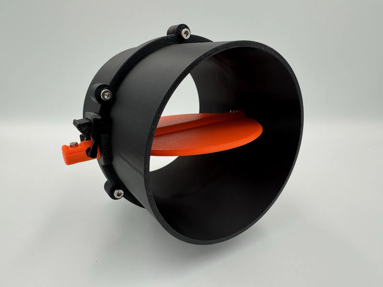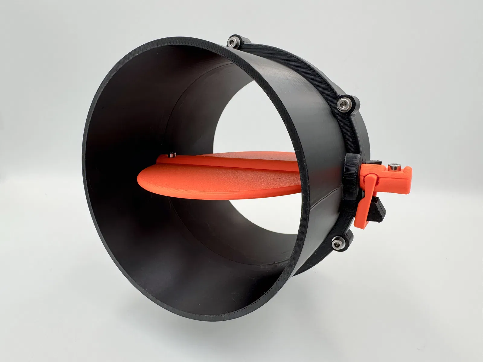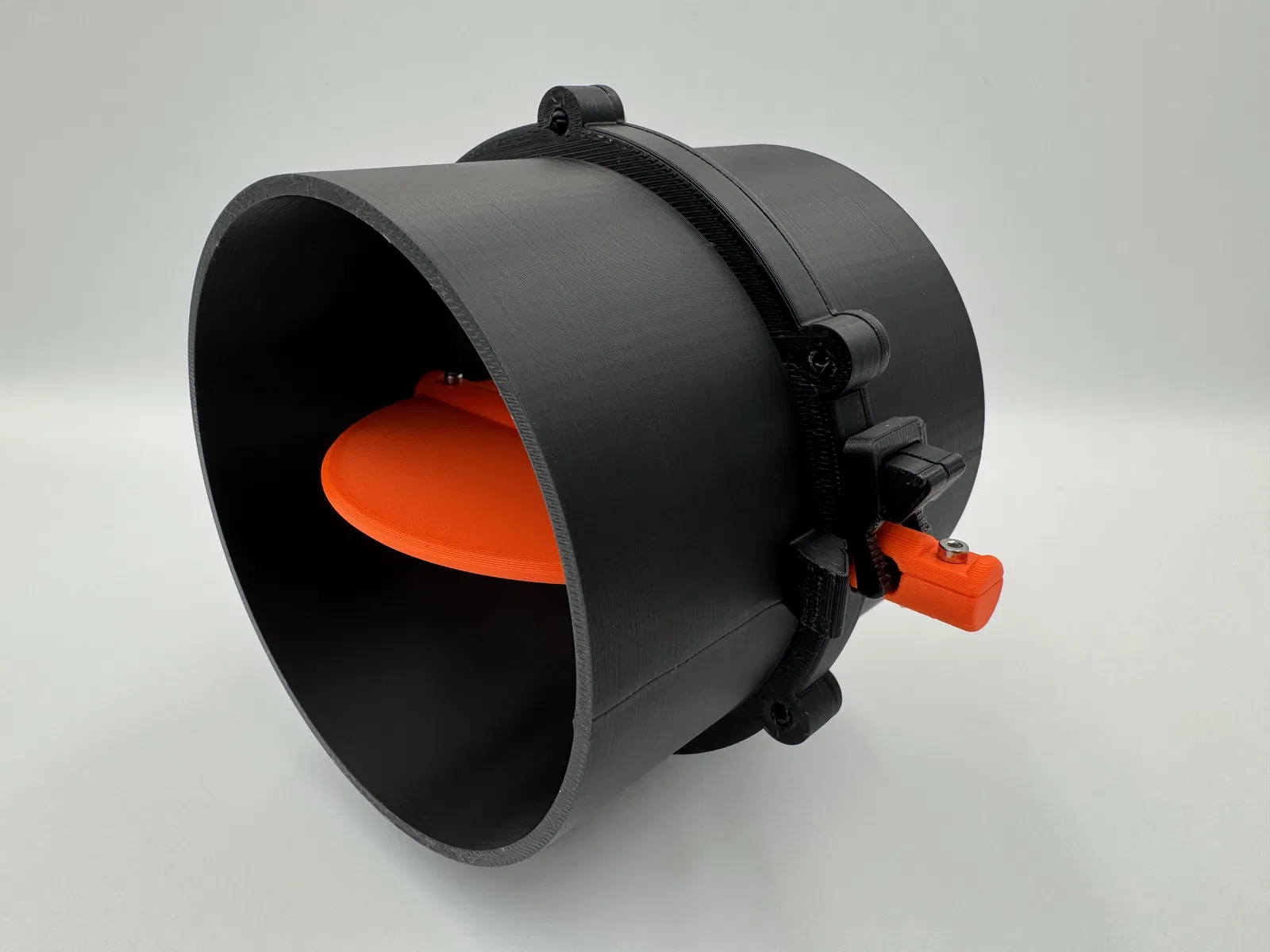 Van bướm này dùng cho ống thông gió mềm 100mm, 125mm và 150mm. Dễ in, ít bộ phận, có chốt giữ cố định. Hướng dẫn lắp ráp có sẵn. Cần một ít ốc và insert M2, M3.