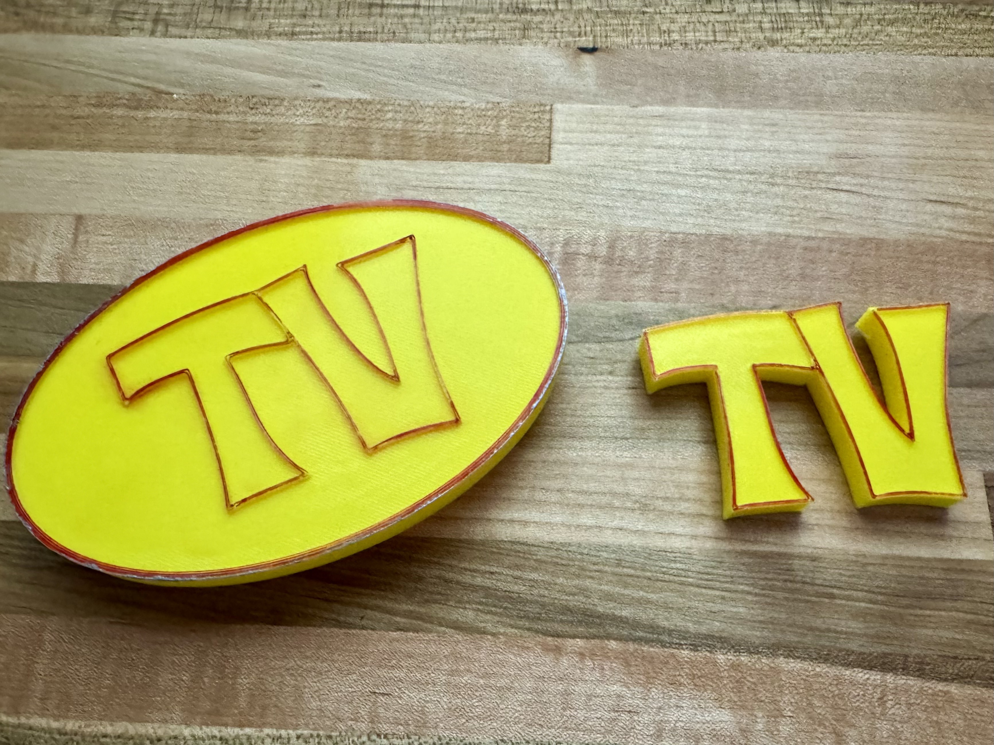 Các cạnh xung quanh "TV" và viền khóa được tô thêm bằng bút sharpie đỏ để tăng thêm chút độ tương phản cho hình ảnh.