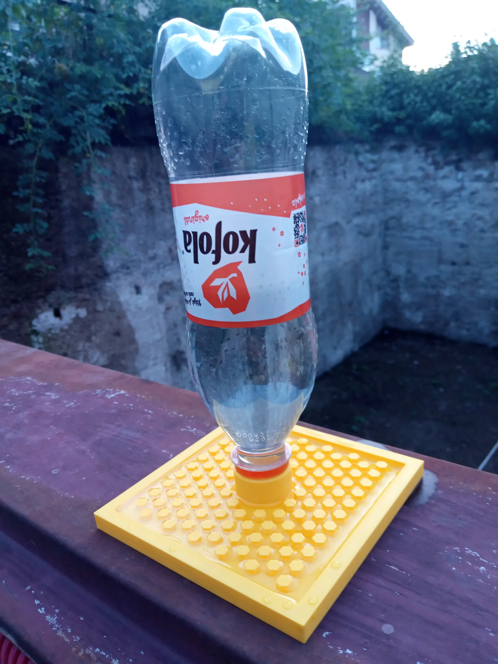 Bạn có thể dùng bất kỳ chai PET nào có cổ chuẩn làm bình chứa nước, mời ong (và các côn trùng khác) đến uống.