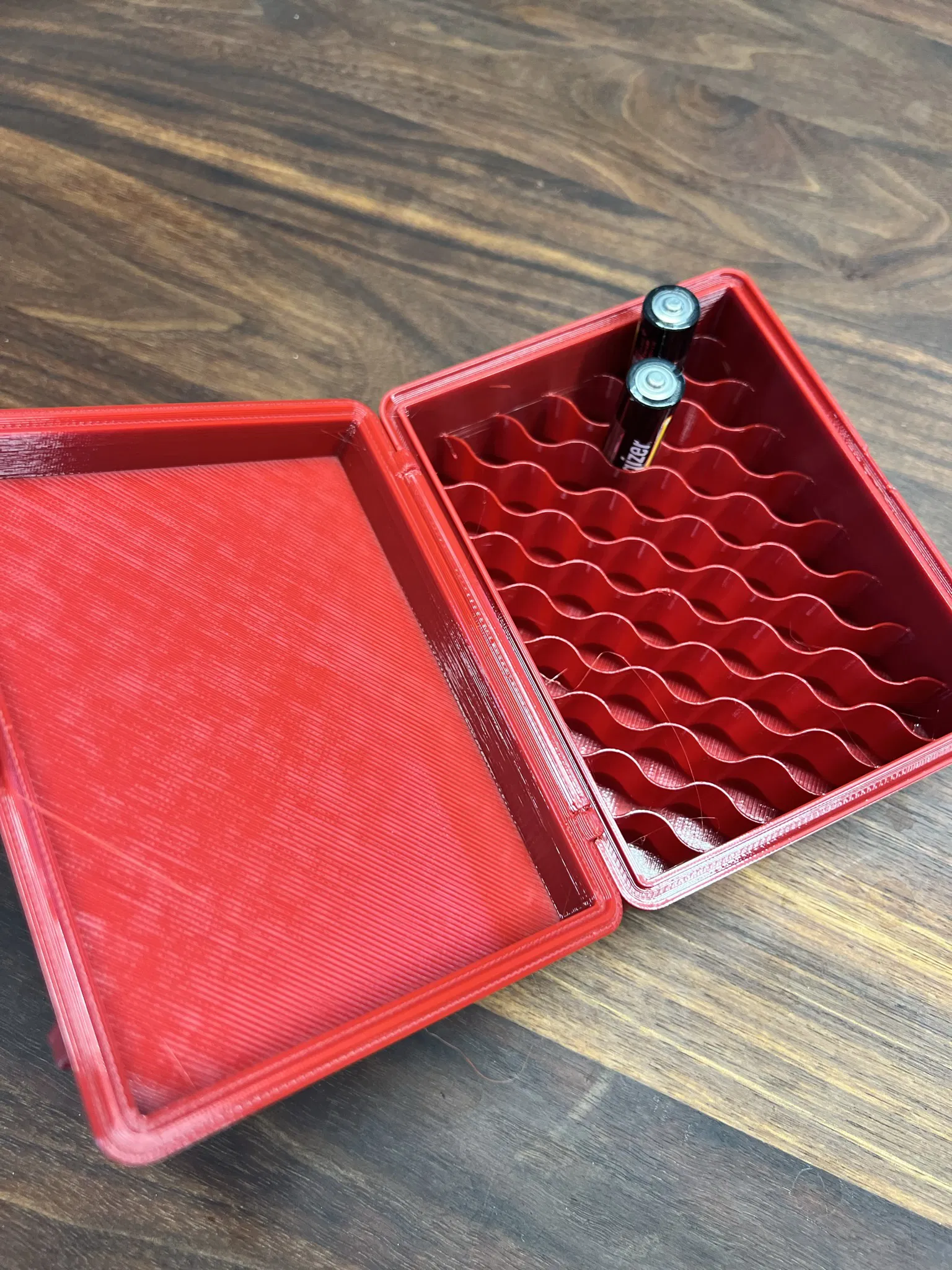 Hộp đựng pin Costco 9v, AAA, AA, CR123, 18650. Bao gồm 48 pin AA, 48 pin AAA, 12 pin 9V, 12 pin CR123, và 24 pin 18650. Hộp này với thiết kế vách ngăn dạng sóng giúp dính chắc chắn, tối ưu cho đầu phun 0.4mm hoặc 0.6mm.