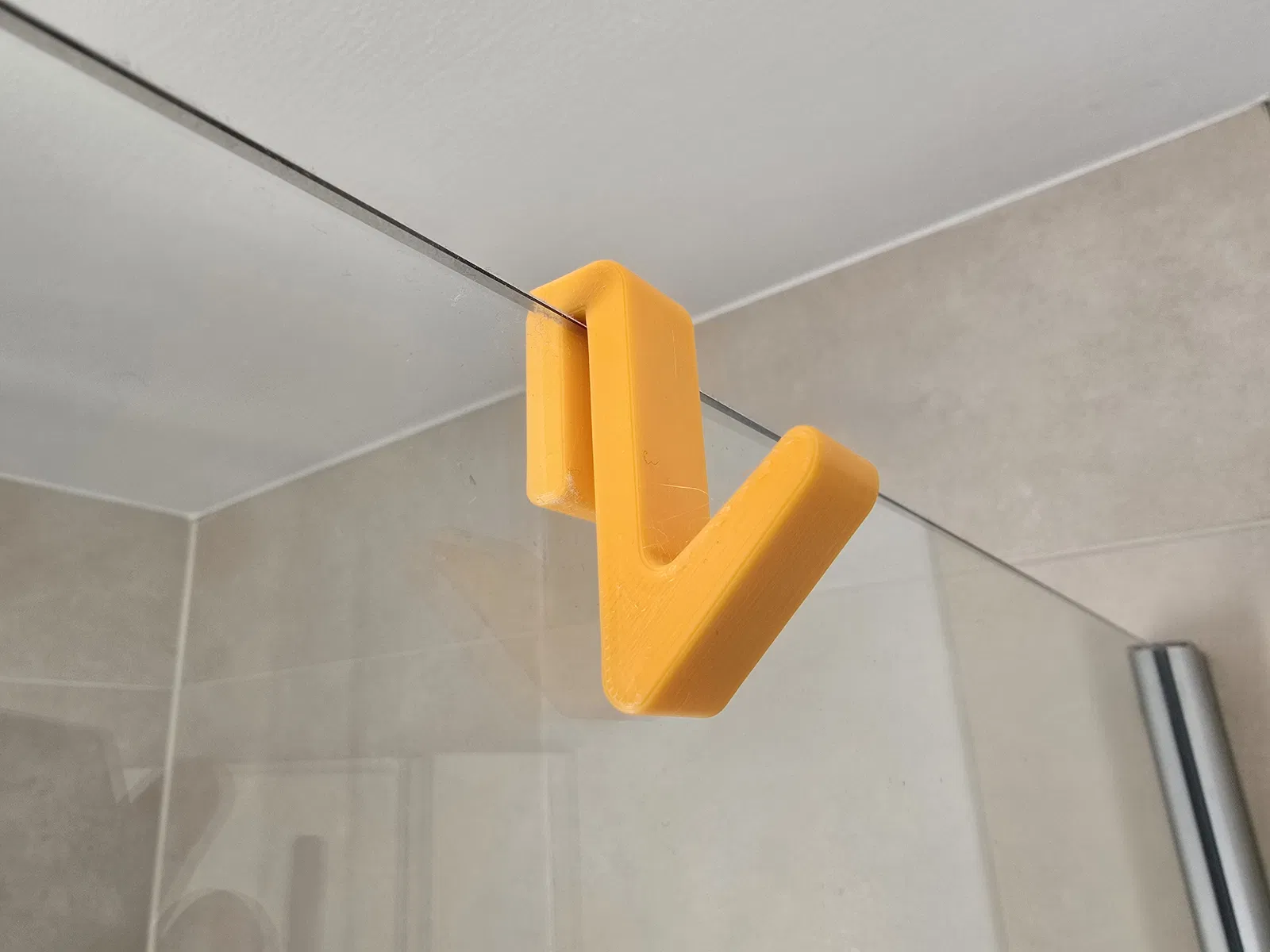 Cái móc hữu ích này được thiết kế cho kính cabin tắm dày 6 và 8mm. Lý tưởng cho khăn tắm, dụng cụ gạt nước trên kính hoặc các phụ kiện phòng tắm khác. Khuyên dùng in bằng PETG hoặc ABS.