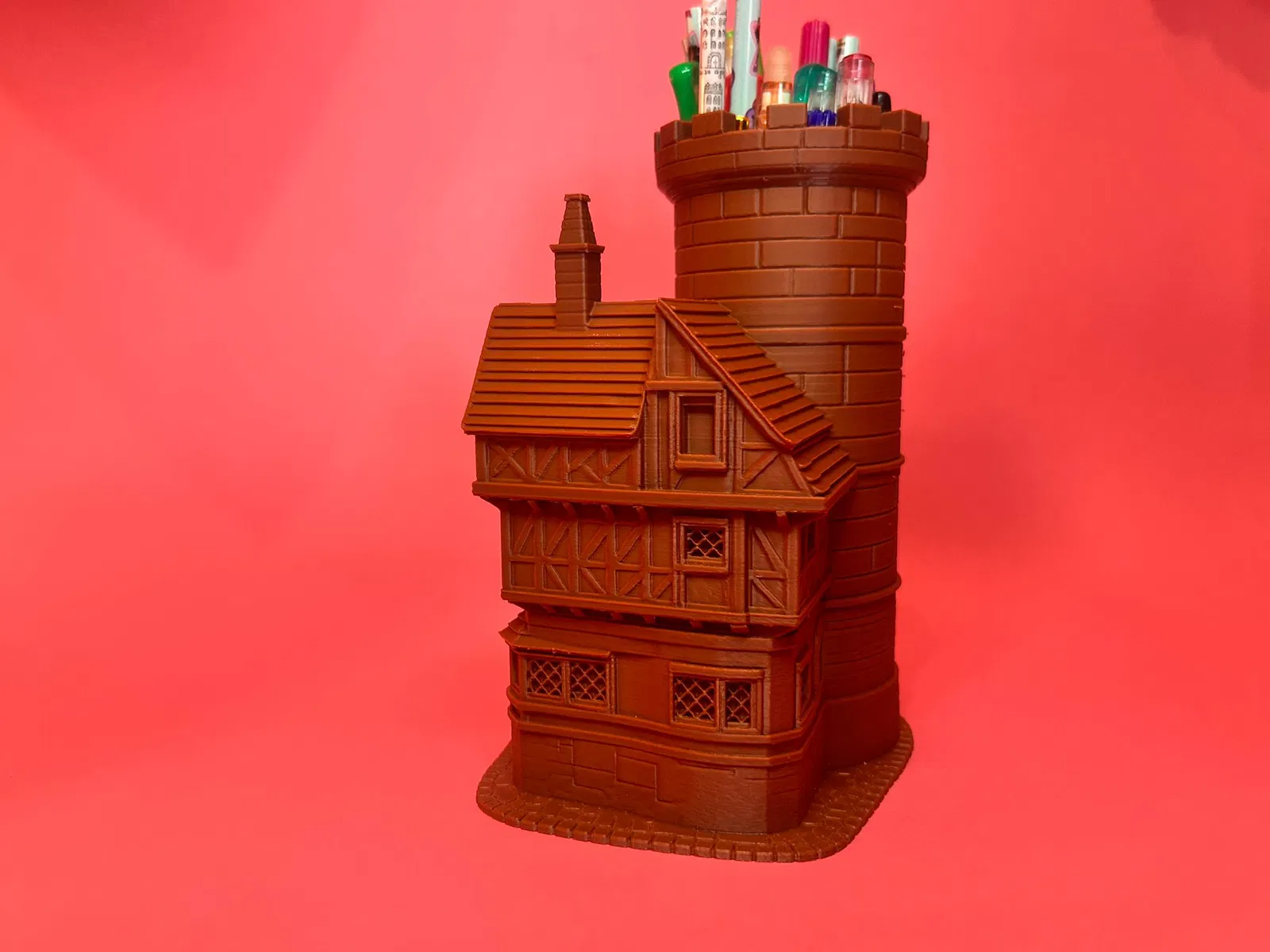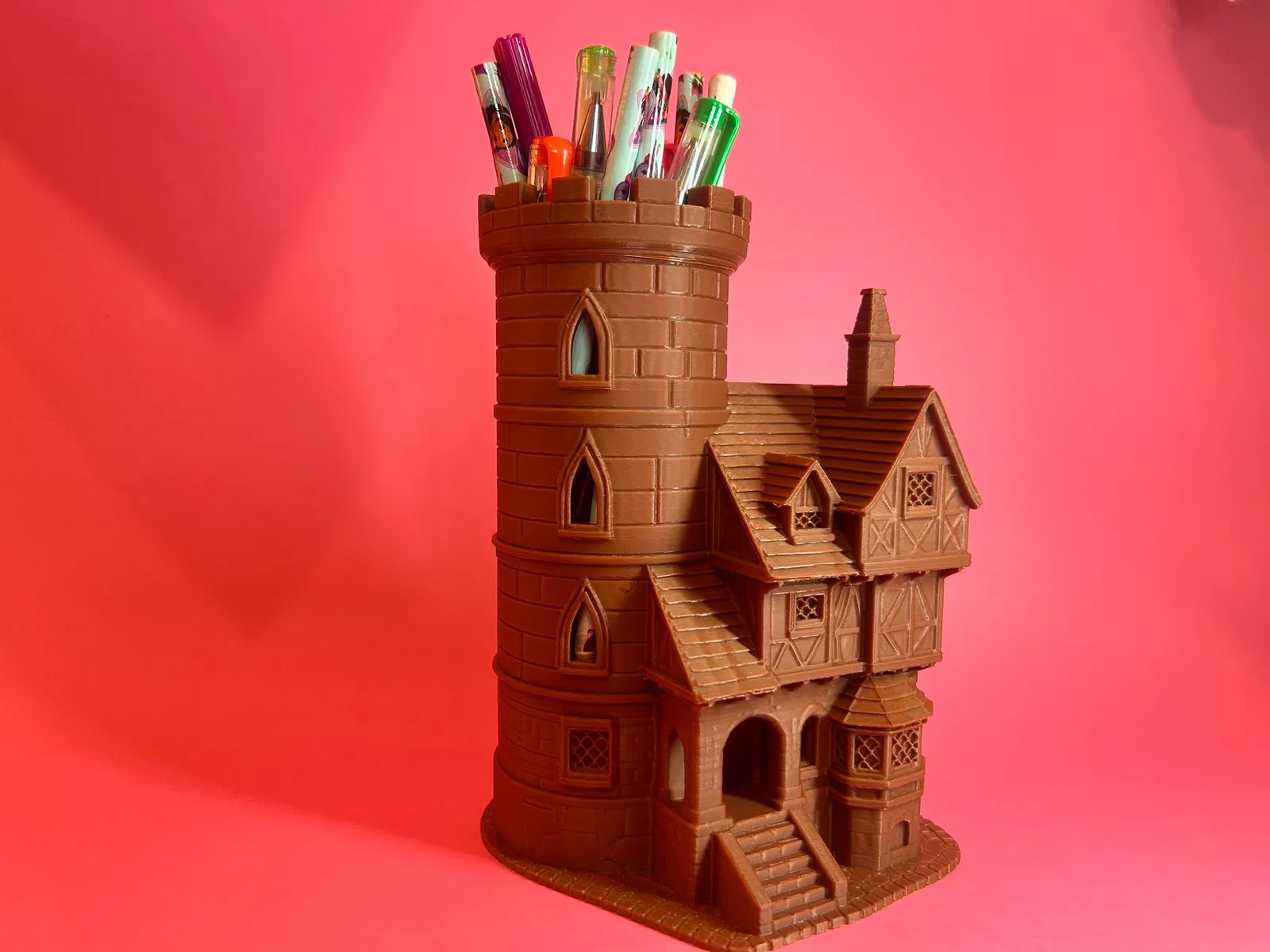 Trang trí bàn làm việc của bạn với chân cắm bút hình lâu đài độc đáo này. Sản phẩm không chỉ giúp bạn sắp xếp bút, bút chì gọn gàng mà còn mang lại nét thẩm mỹ thú vị, biến không gian làm việc, học tập thêm phần sinh động. Dễ dàng in ấn 3D với mọi loại máy.