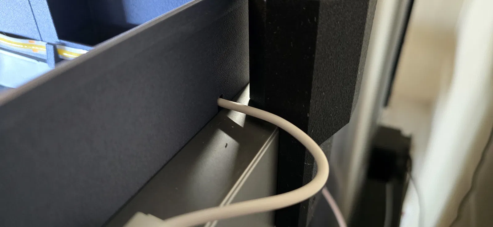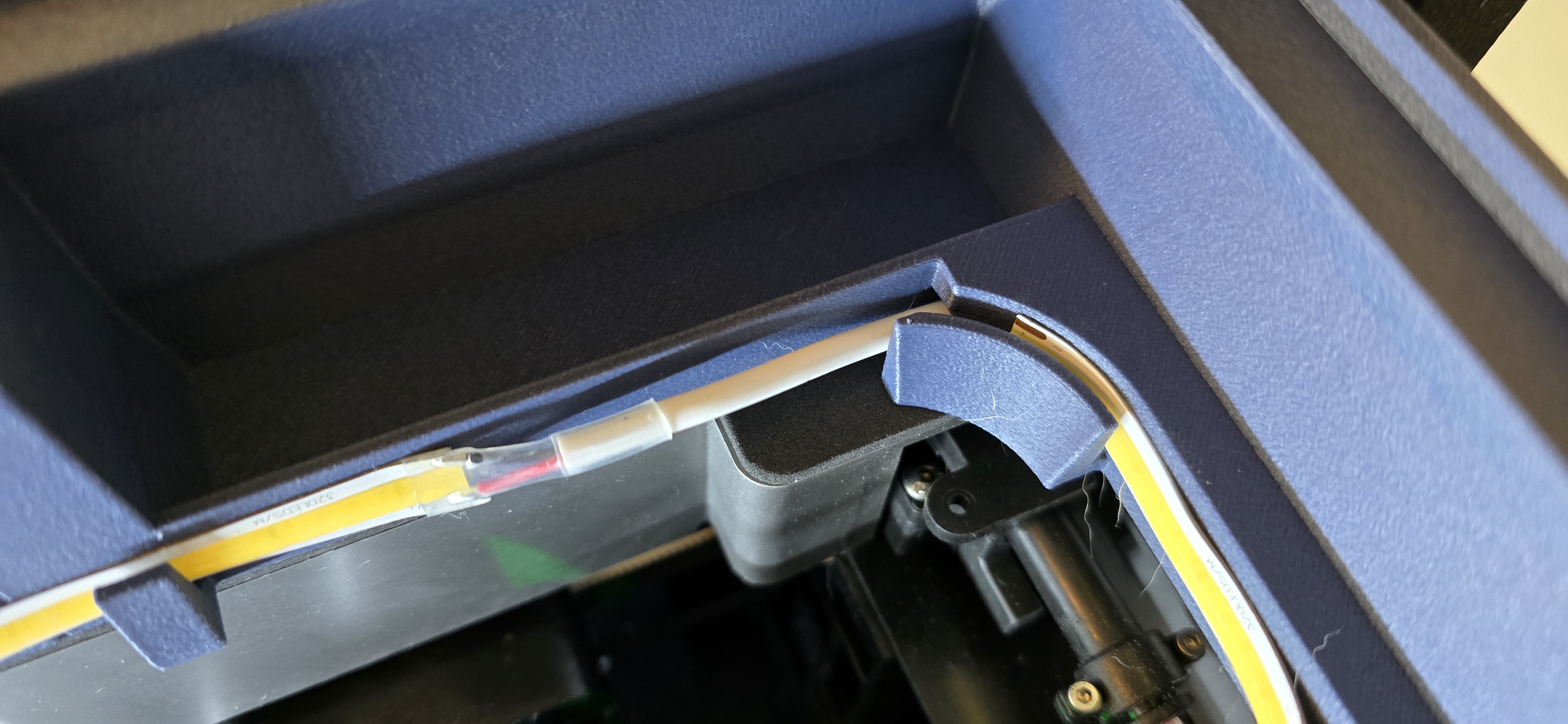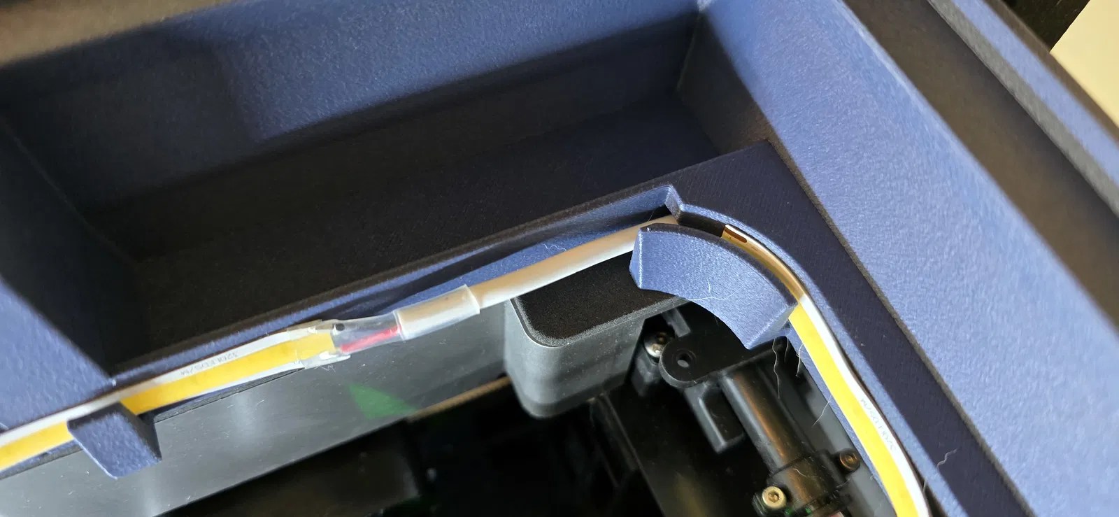Tôi đã di chuyển đầu vào cáp dải đèn để thẳng hàng với đường viền của các bức tường bên trong để không còn các đoạn gấp khúc chặt trong đường đi của cáp, và tôi đã đặt một đầu vào ở mỗi bên để có nhiều tùy chọn định tuyến cáp hơn.