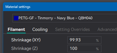 Tôi rất khuyến khích người dùng sử dụng để điều chỉnh tỷ lệ phần trăm Co rút XY cho sợi nhựa của bạn.