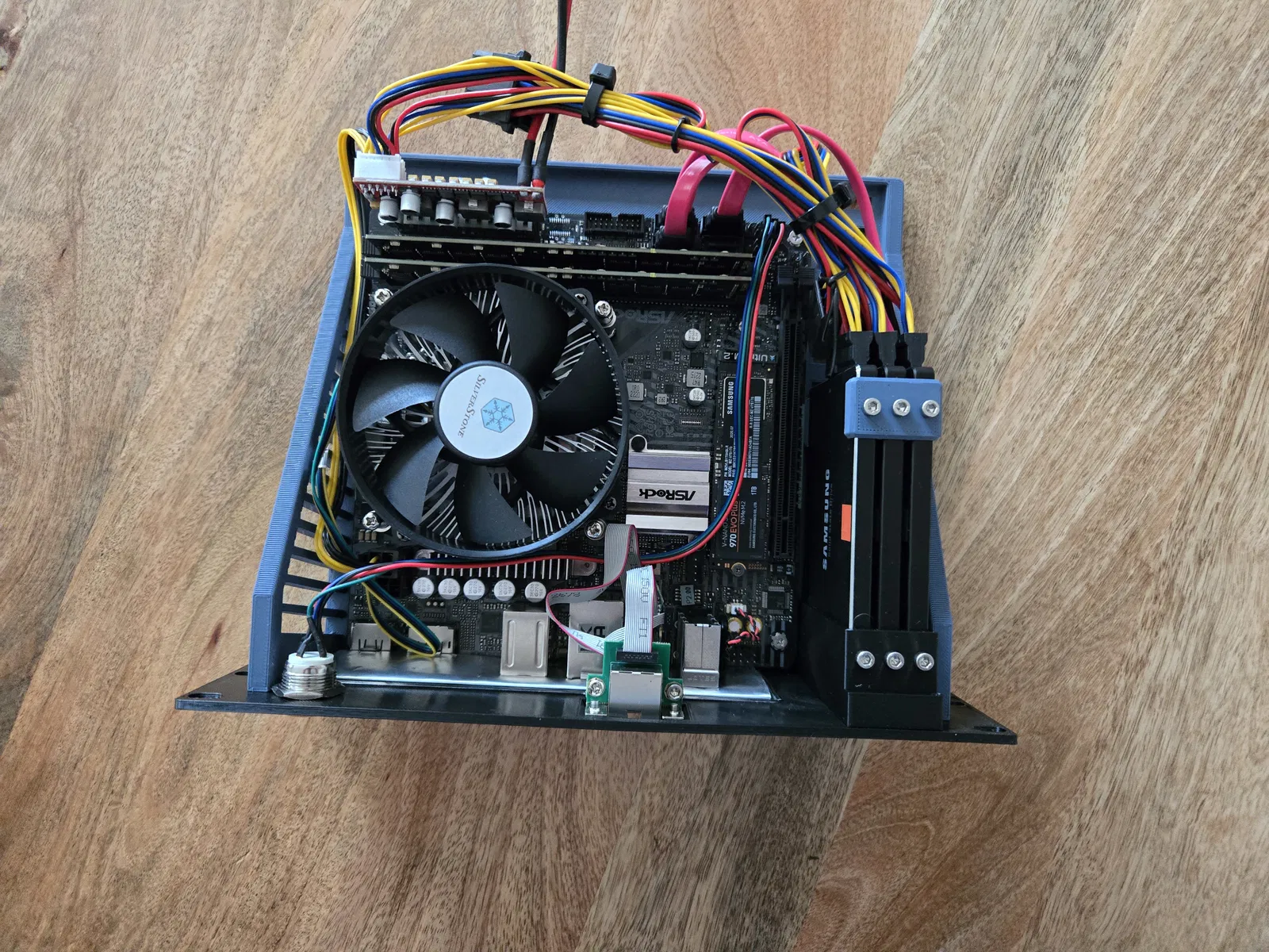 Giá đỡ SSD cần được in với mặt có khe cắm SSD hướng lên trên.