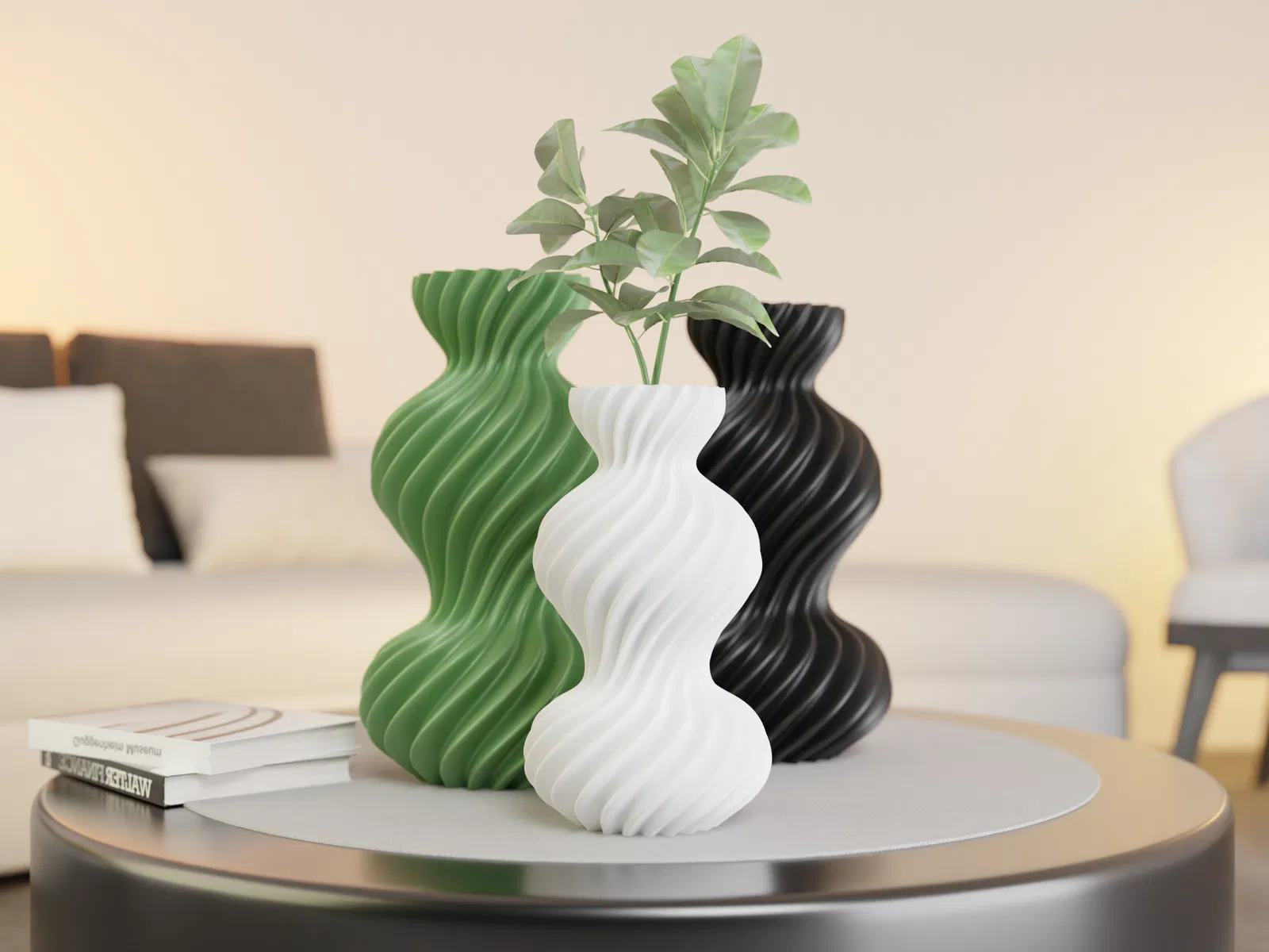Bộ sưu tập bình hoa 3D tinh tế này sẽ nâng tầm đồ trang trí nhà cửa của bạn lên một đẳng cấp mới, với thiết kế hiện đại và những đường nét tự nhiên. Các bình hoa có nhiều hình dạng và kích cỡ khác nhau, tạo thêm nét thẩm mỹ cho bất kỳ không gian nào nhờ hình dáng đơn giản nhưng ấn tượng.