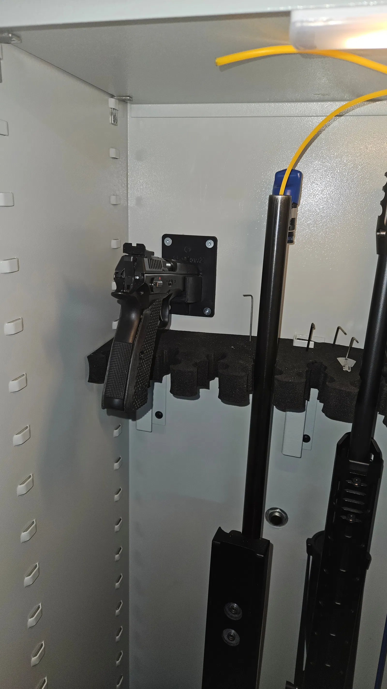 Giá treo súng CZ Shadow 2, được in 3D bằng nhựa ASA. Thiết kế dạng đứng giúp các lớp in bám tốt hơn, đảm bảo độ bền. Có thể dùng nhựa PLA để in mà không gặp vấn đề gì. Thích hợp để bảo quản súng trong tủ sắt.