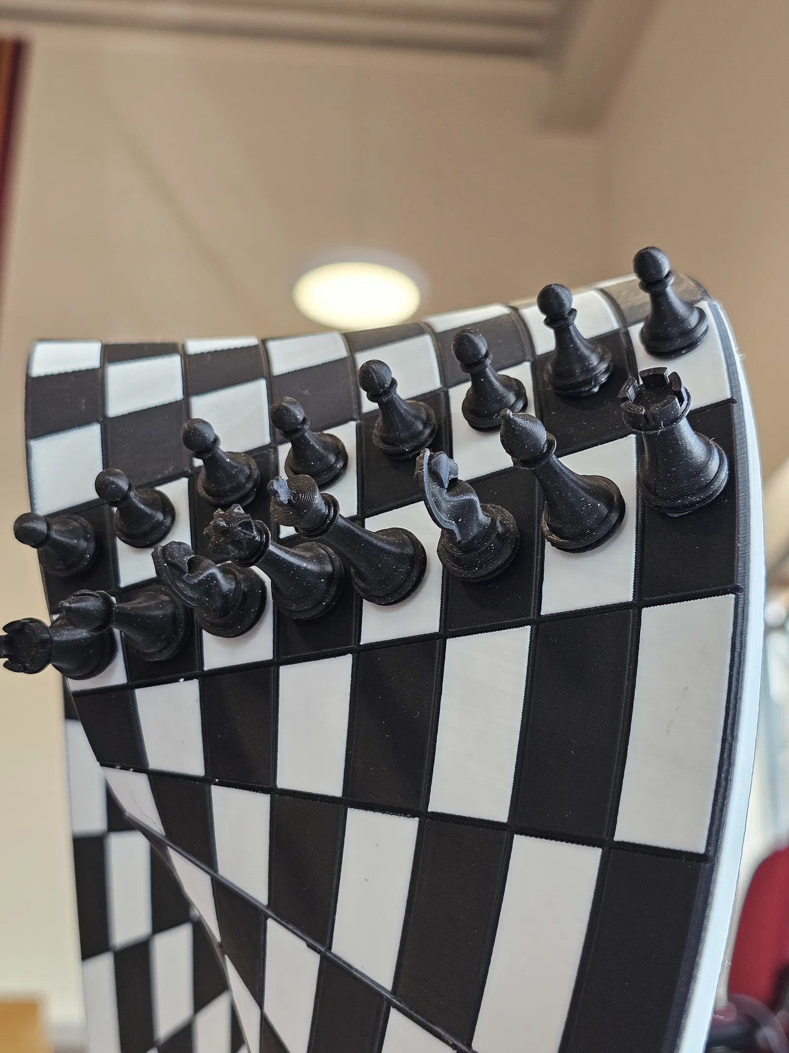 Ảnh thumbnail là bản render vì tôi đang in bàn cờ. Ước tính thời gian in cho toàn bộ dự án là 3 ngày. (p1s, 3 vật liệu (PLA đen, PLA trắng, support cho PLA), layer height 0.2mm, scale 66%)