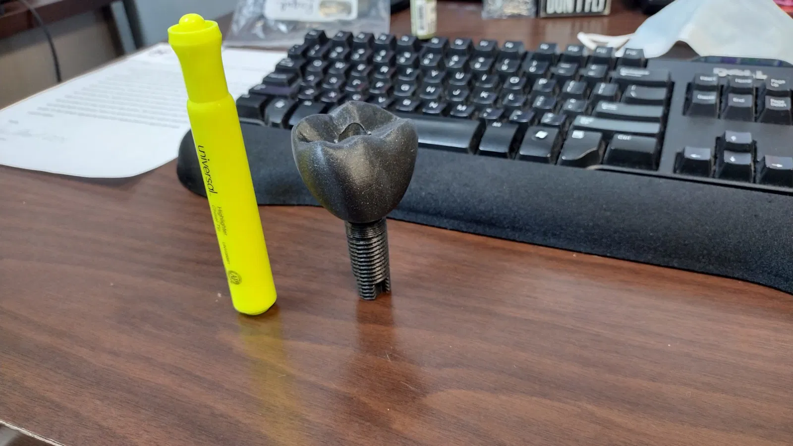 Mẫu bệnh nhân để lưu trữ tại văn phòng. Abutment hơi nhỏ, nhưng nó vẫn hoàn thành tốt nhiệm vụ. Hình ảnh thứ hai của một mẫu được thu nhỏ lại.