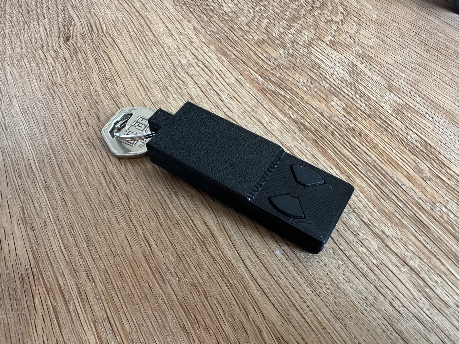 Mấy cái remote Chamberlain cho cửa gara á, nó dễ bị gãy cái móc treo chìa khóa lắm. Nên tui có vẽ và in cái mặt sau với cái kẹp phía trước để thay thế mấy cái đó. Tiết kiệm được mớ tiền khỏi phải mua mới…
