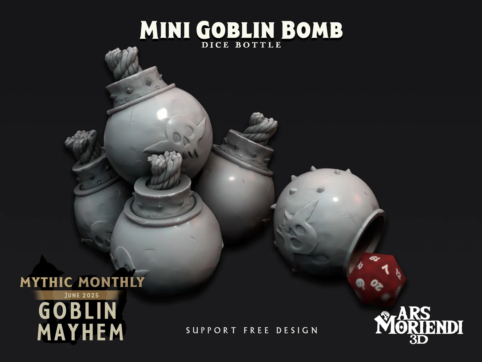 Hộp đựng xúc xắc tí hon cho D20 của bạn, hóa trang thành quả bom goblin không ổn định. In 100% không cần hỗ trợ! Một món quà miễn phí từ gói Goblin Mayhem, với nắp vặn có thể tùy chỉnh.