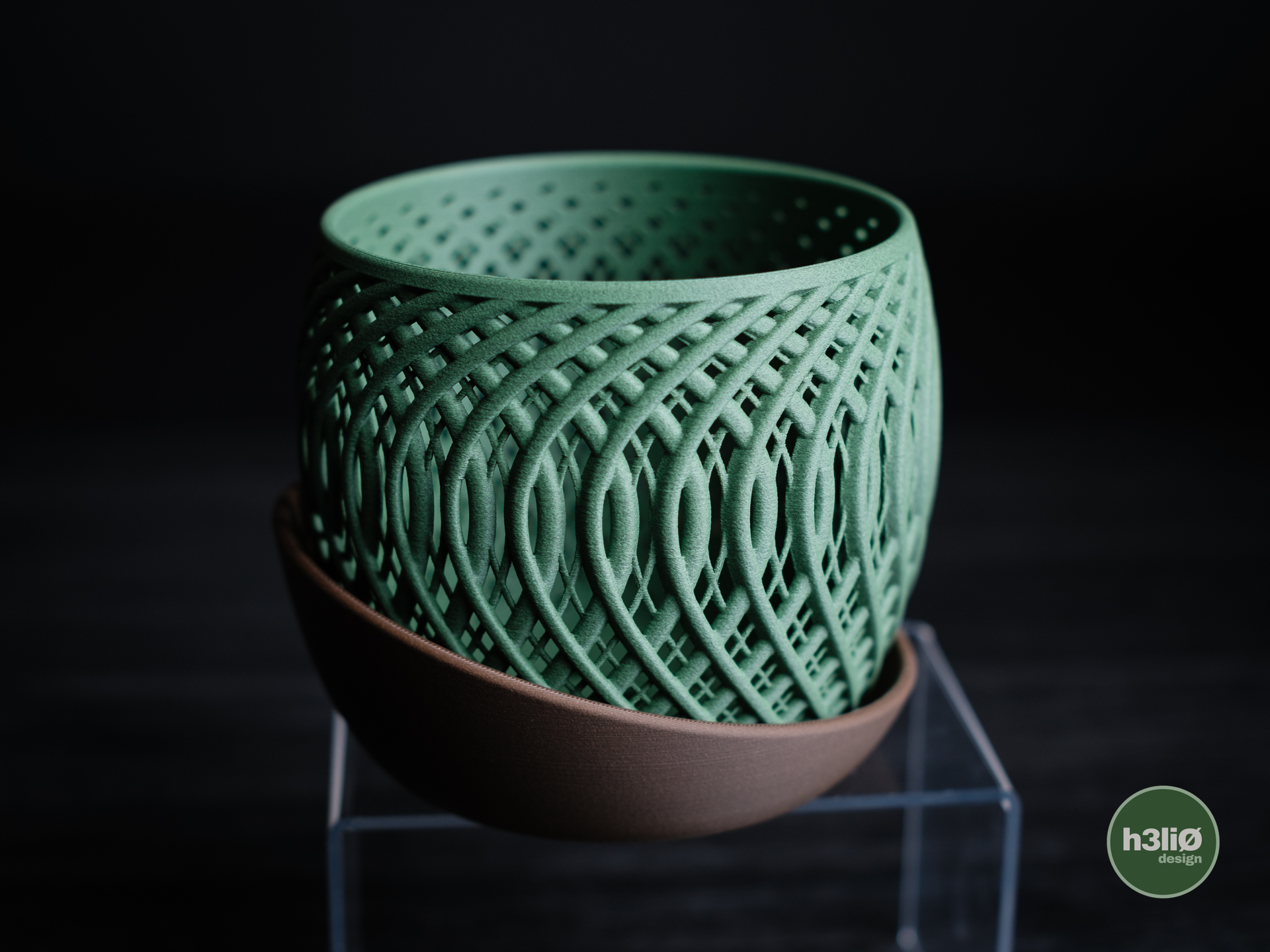 Chậu lan Quasar hiện đại, tối giản, thiết kế thông thoáng với đĩa nâng đỡ. Kích thước 100mm và 80mm. Yêu cầu filament khô, cân chỉnh tốt và mâm in sạch để in hoa văn đẹp mắt.