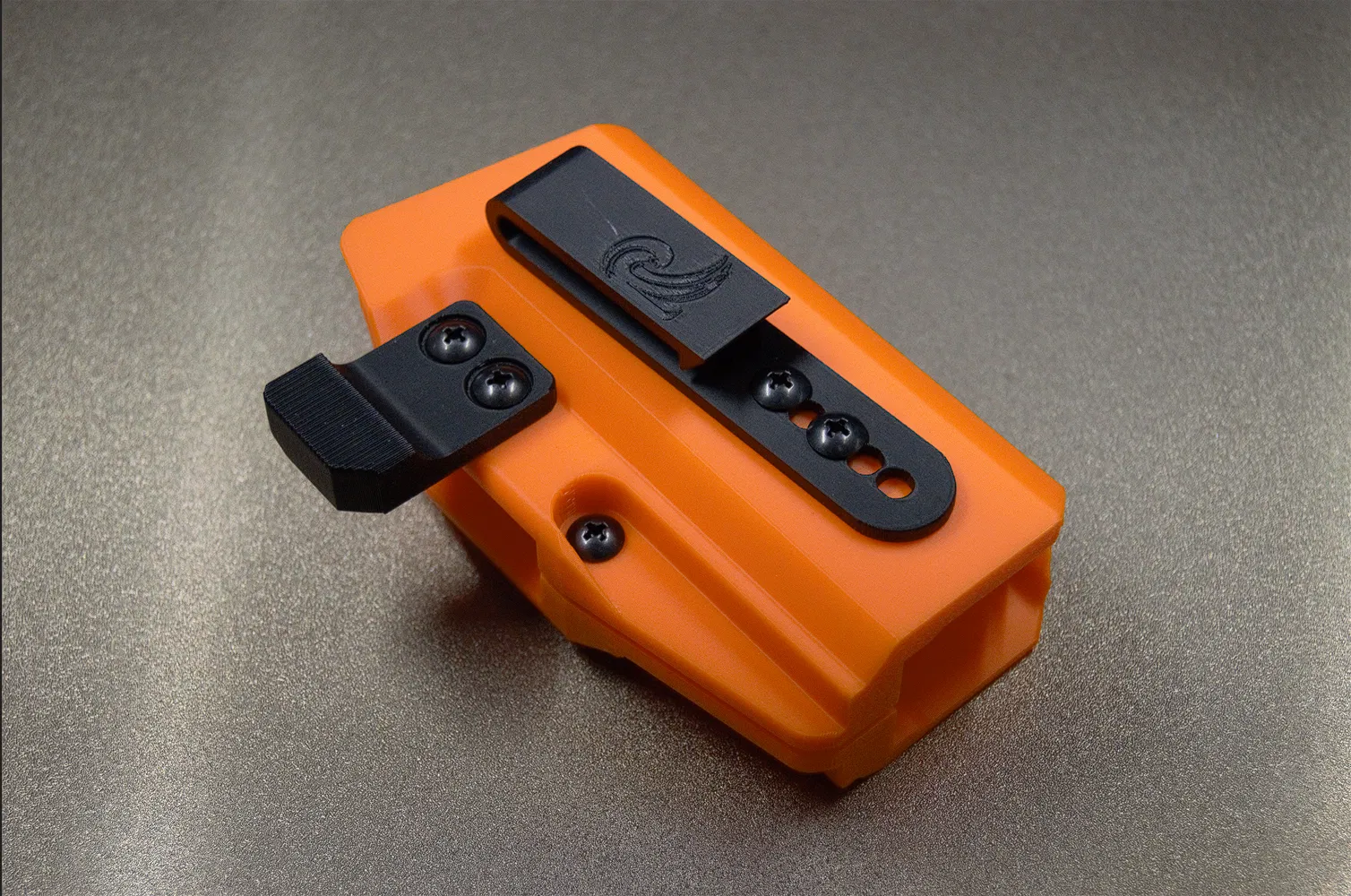 Mô tả Bao Da Riptide là bao da đeo trong quần (IWB) dạng appendix-carry được in 3D, tương thích với Hệ thống Quang Học Mô-đun (MOS) của GLOCK, thân thiện với sight cao cho giảm thanh, và có thể chế tạo với chi phí khoảng $8.00. Bao Da Riptide được thiết kế để sử dụng với khung GLOCK Chính Hãng (OEM), hầu hết các khung in 3D, và hầu hết các khung 80%.