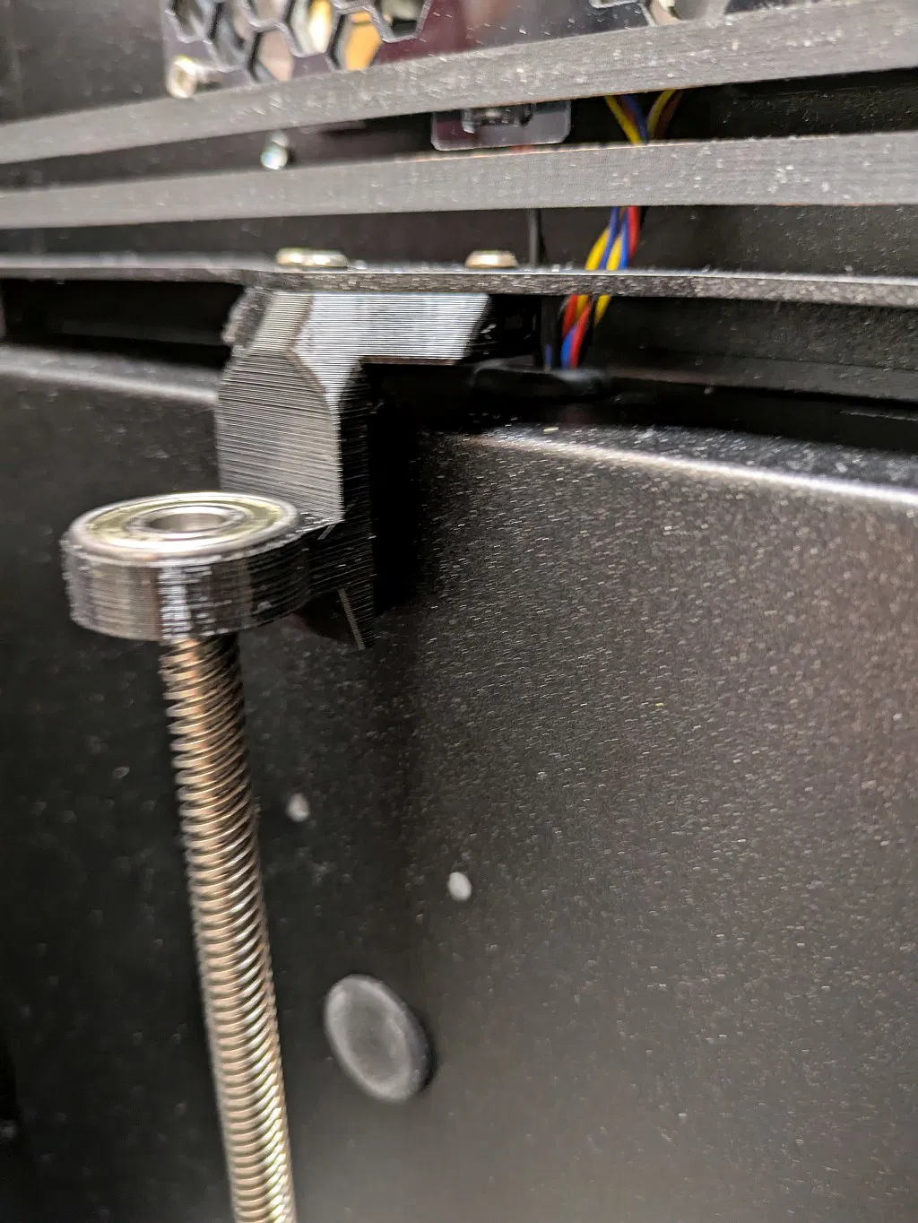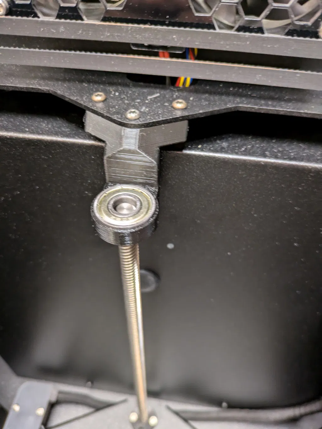 Nếu bạn in mô hình cao hơn 150cm và sử dụng profile tốc độ, bạn sẽ thấy rung lắc mạnh ở trục Z phía sau, cái này chỉ gắn với trục ren thôi. Tôi đã chỉnh sửa lại mô hình gốc để có thể sử dụng vòng bi 608Z.