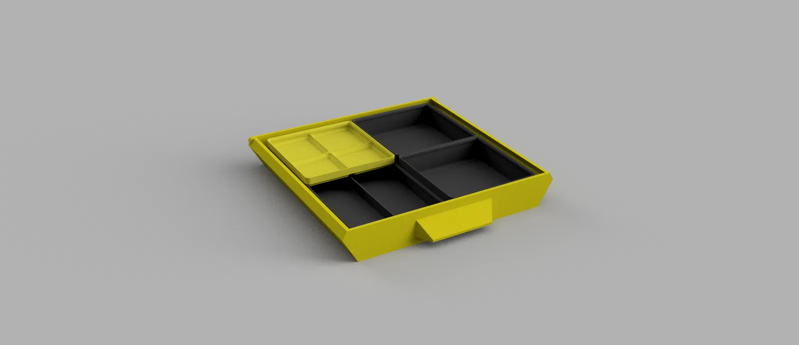 Mẫu này được thiết kế để tối đa hóa không gian cho các hộp Gridfinity, chứa được các kích thước lên đến 4x4x3. Nó hỗ trợ cả các hộp Gridfinity 3U tiêu chuẩn với Nắp Gridfinity và các hộp 3.5U không tiêu chuẩn nhờ tấm đế Gridfinity siêu nhẹ, rất hữu ích cho việc lưu trữ thêm. Tui cũng đã thêm các hộp tùy chỉnh để tối ưu hóa không gian ngăn kéo, cùng với một hộp 2x2x1 siêu mỏng có thể trượt qua hộp bút của hộp Gridfinity 4x2x2.5.