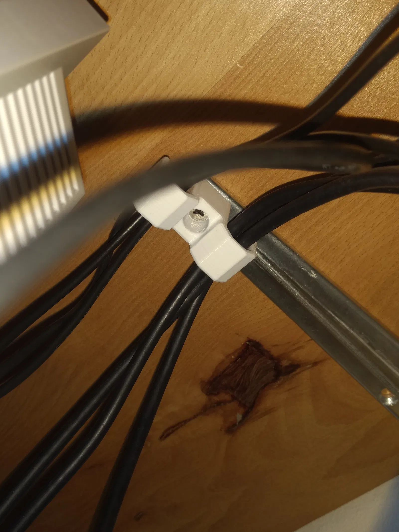 Đơn giản là vặn nó vào một cái giá đỡ kệ có sẵn. Cái kẹp giữ dây cáp đo này sẽ giúp bạn giữ các sợi dây đo cáp một cách gọn gàng.