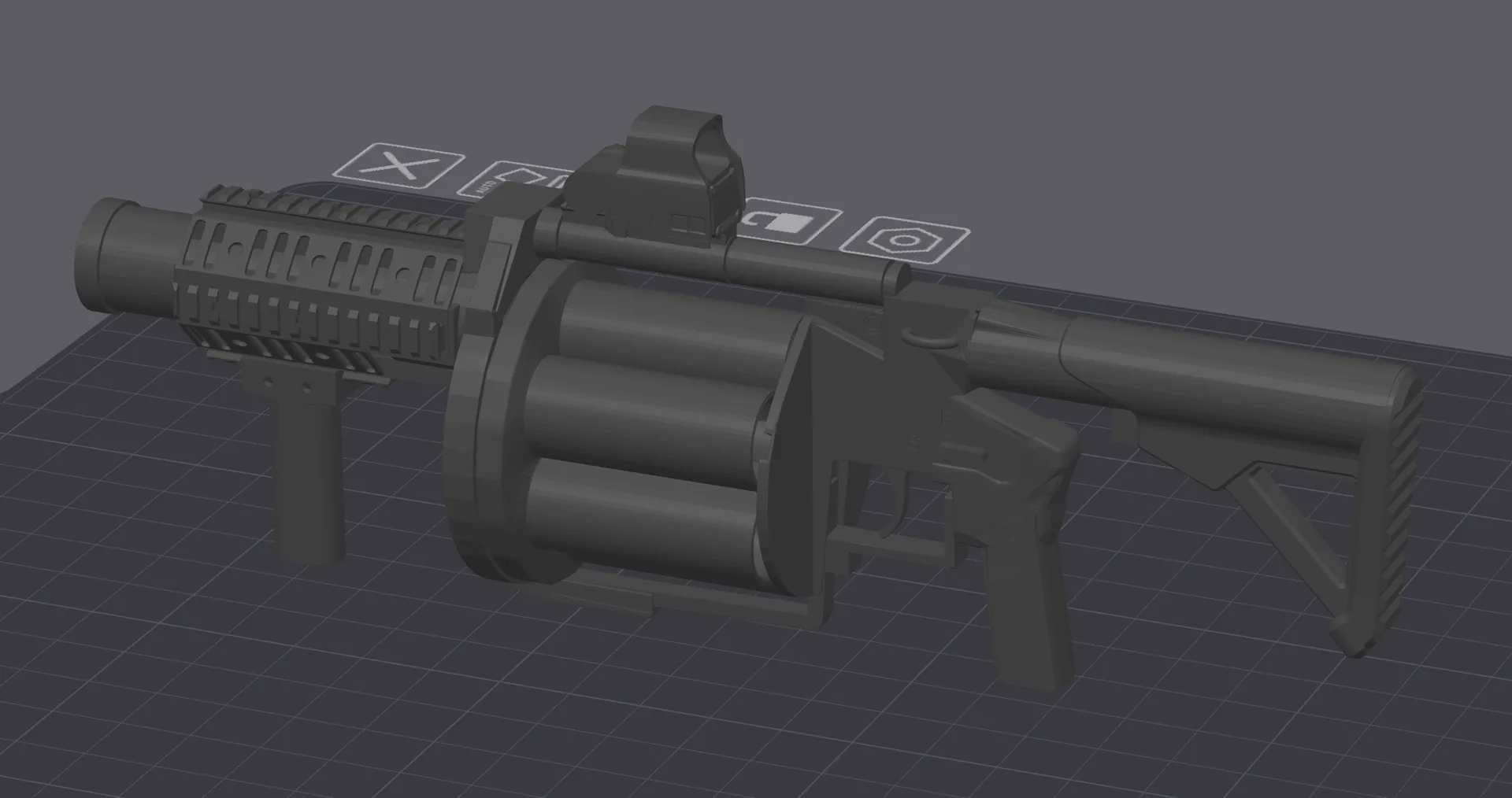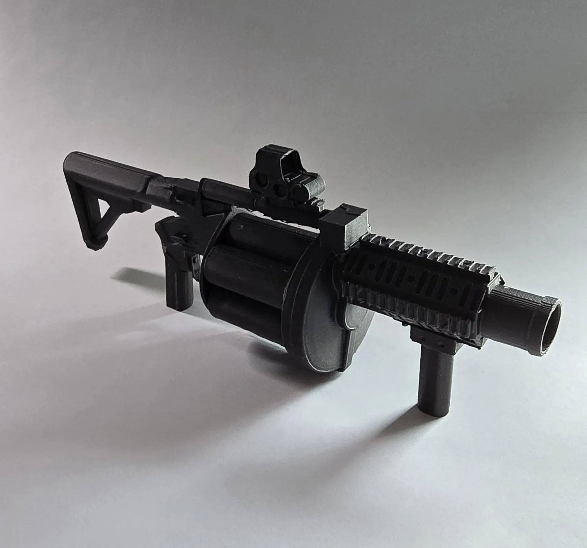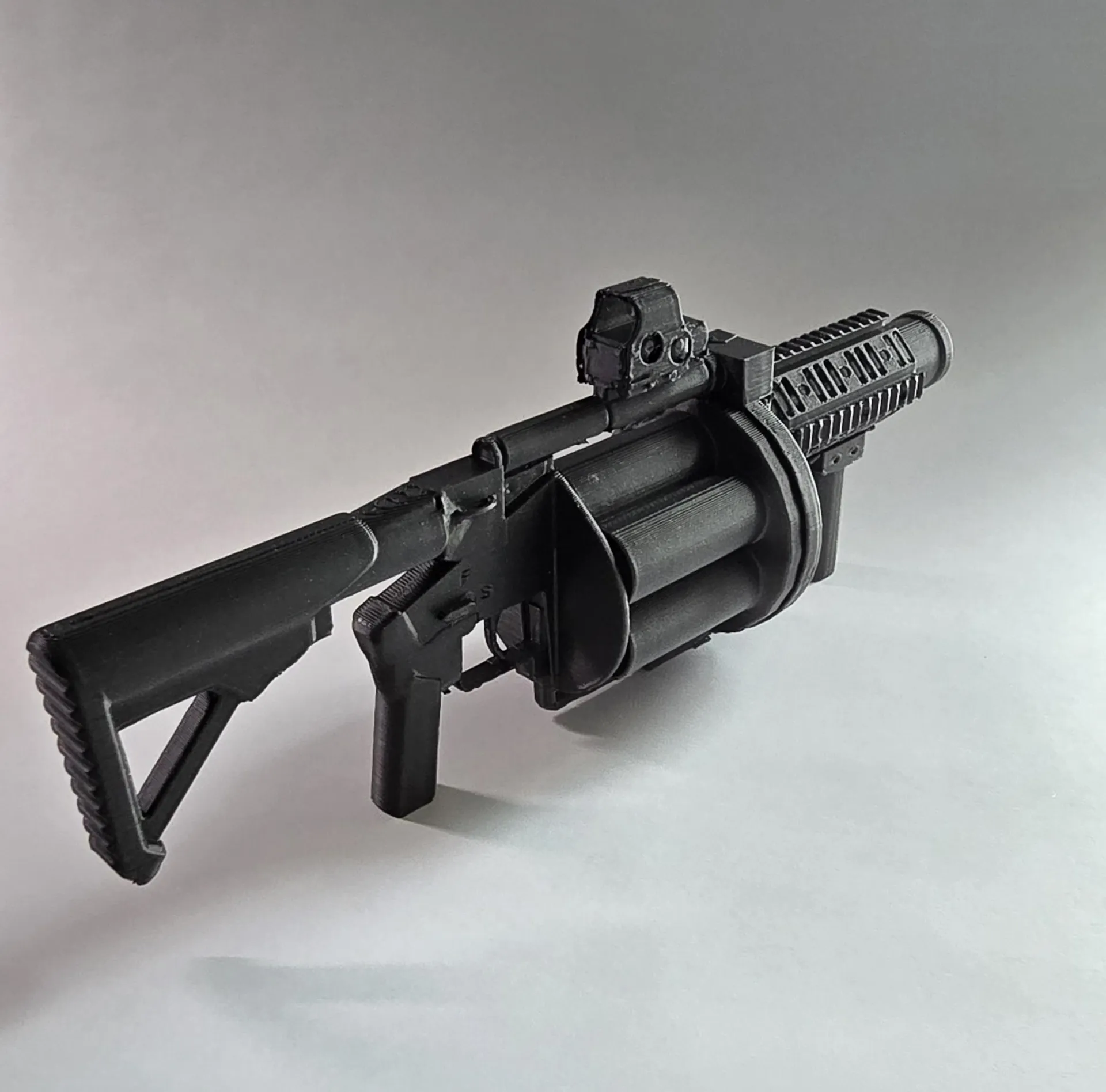 Nó là một khẩu phóng lựu lớn, đúng như thường lệ nên tui không chắc là nó có in được trên A1 Mini hay không. Tui đã in cái của mình ở các lớp .16 và .20mm, tuy cả hai đều cho ra kết quả tuyệt vời, nhưng .16 thì hoàn hảo và chỉ mất 4 tiếng. Nó đang ở kích thước 250% (kích thước tui thích nhất), nhưng nếu thu nhỏ lại, dù chưa thử nghiệm, có lẽ vẫn ổn đến một mức nào đó. Nếu bạn làm về 100% (thu nhỏ còn 40%) tui đề nghị dùng đầu phun .2 để giữ được chi tiết.
