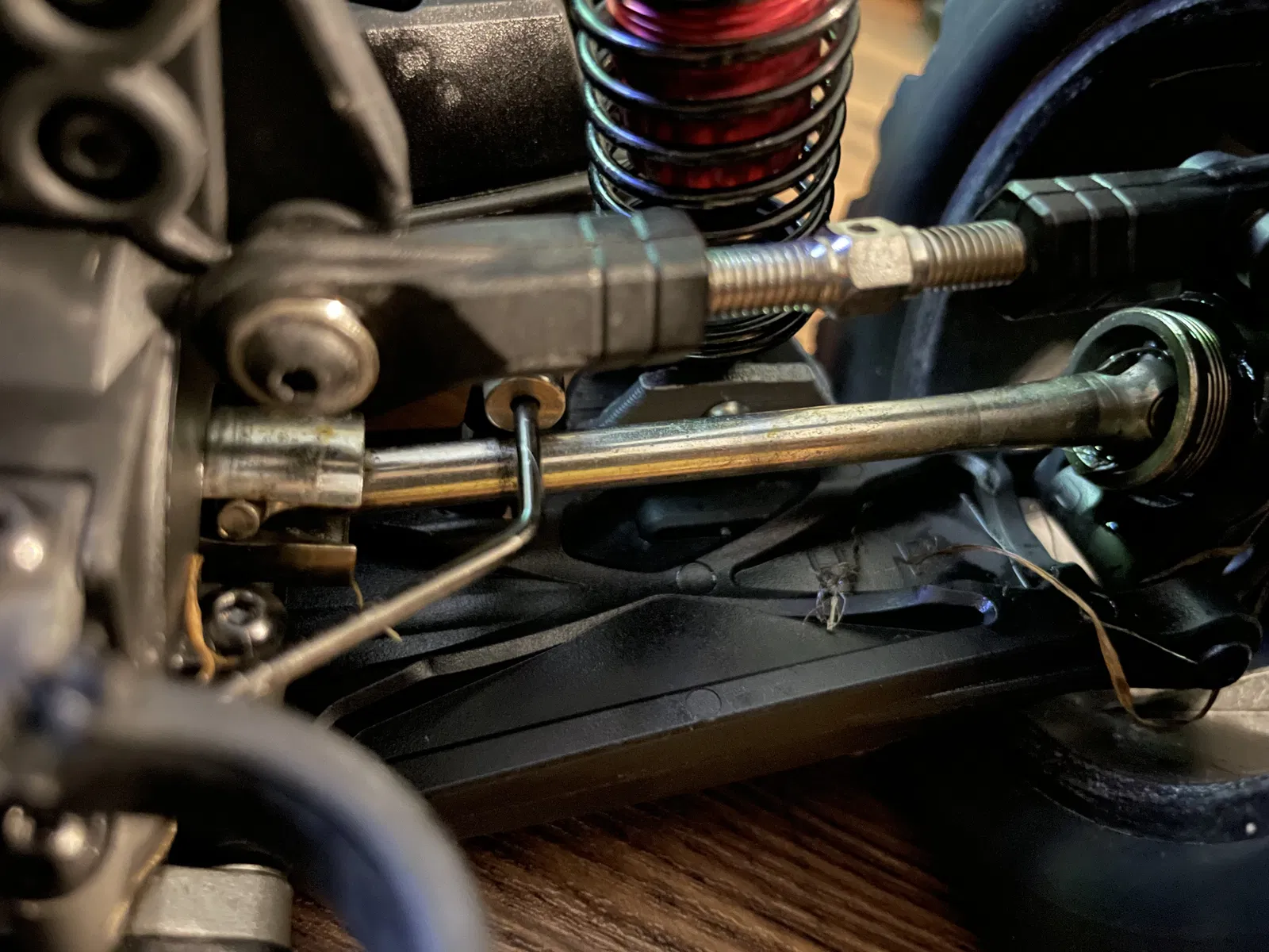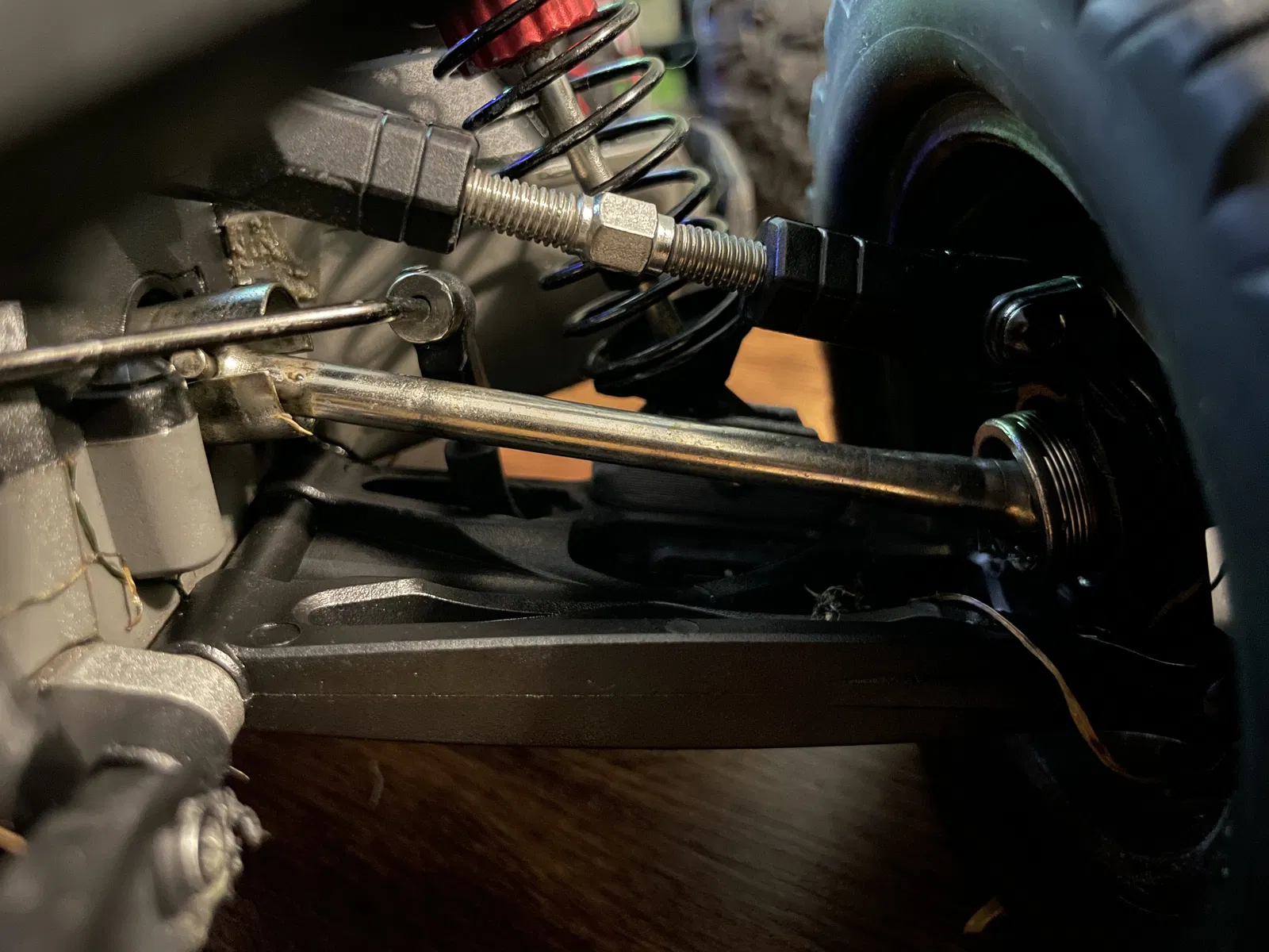 - Gắn lại giảm xóc bằng ốc M3x16 và đai ốc khóa.