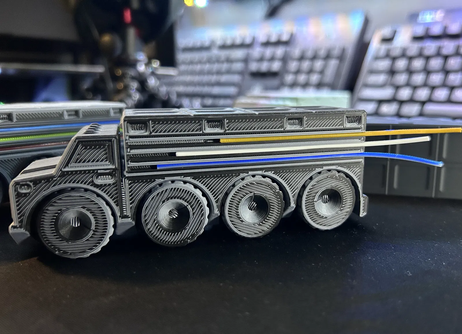 Giới thiệu XE TẢI BIG RIG, một mô hình in sẵn có thể tùy chỉnh bằng sọc "Raw Filament Pinstripes". Phiên bản nhỏ hơn cũng có sẵn. File cập nhật sửa lỗi bánh xe và có thể thêm sợi filament để trang trí. Cài đặt in đơn giản: 0.2mm, 10-15% infill, không supports.