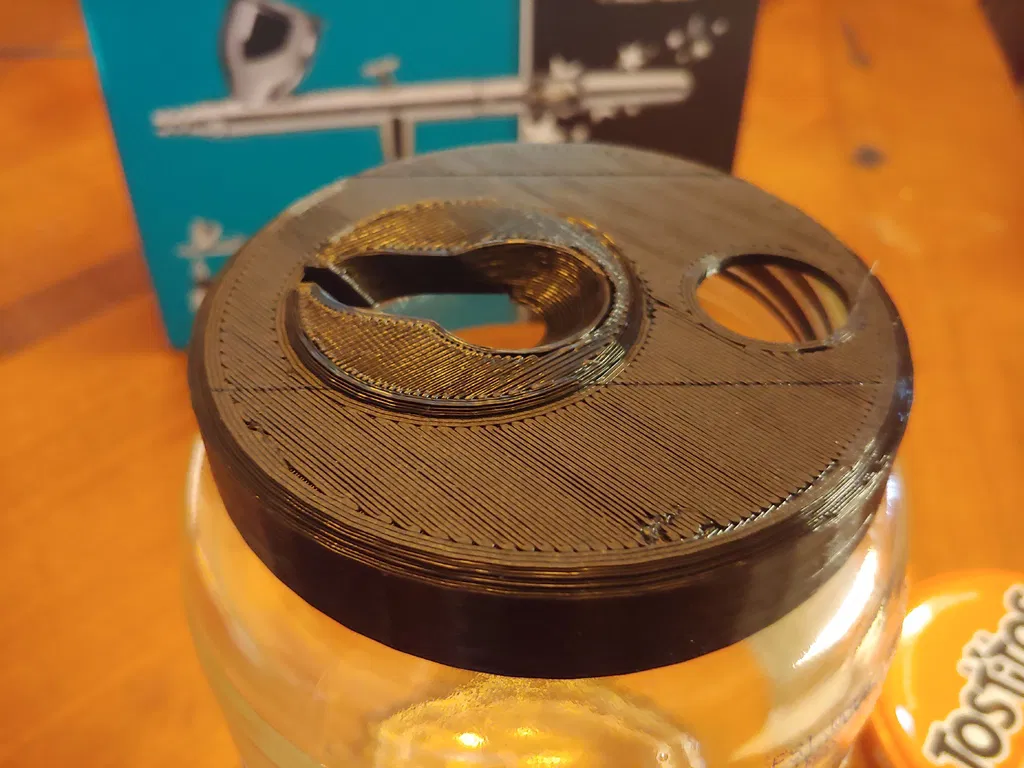 Mình thiết kế cái đế cọ là một bộ phận có thể tháo rời để có thể làm đế cho mấy cây airbrush khác hoặc mấy thứ khác hay để trong hũ nước. Cái bộ phận lọc thì mình cố tình làm nó hơi cấn cái miệng hũ để bạn có thể đặt nó vô dễ dàng, chỉ cần vo viên giấy ăn hoặc gì đó làm vật liệu lọc là được.
