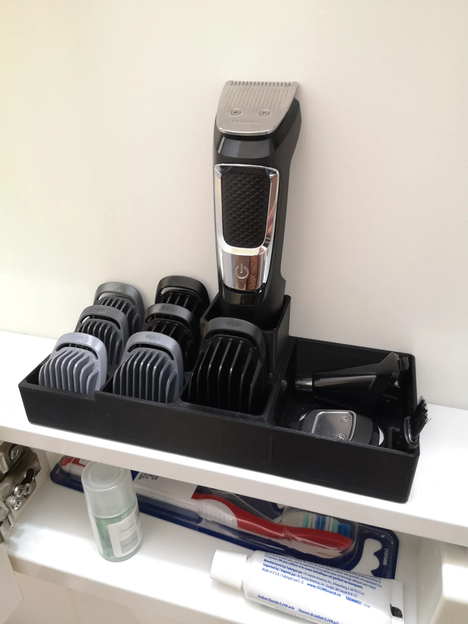 Giữ máy tỉa lông Philips MG3750 của anh em gọn gàng, ngăn nắp. Thiết kế thông minh với lỗ thoát khí giúp dễ dàng vệ sinh và phơi khô.