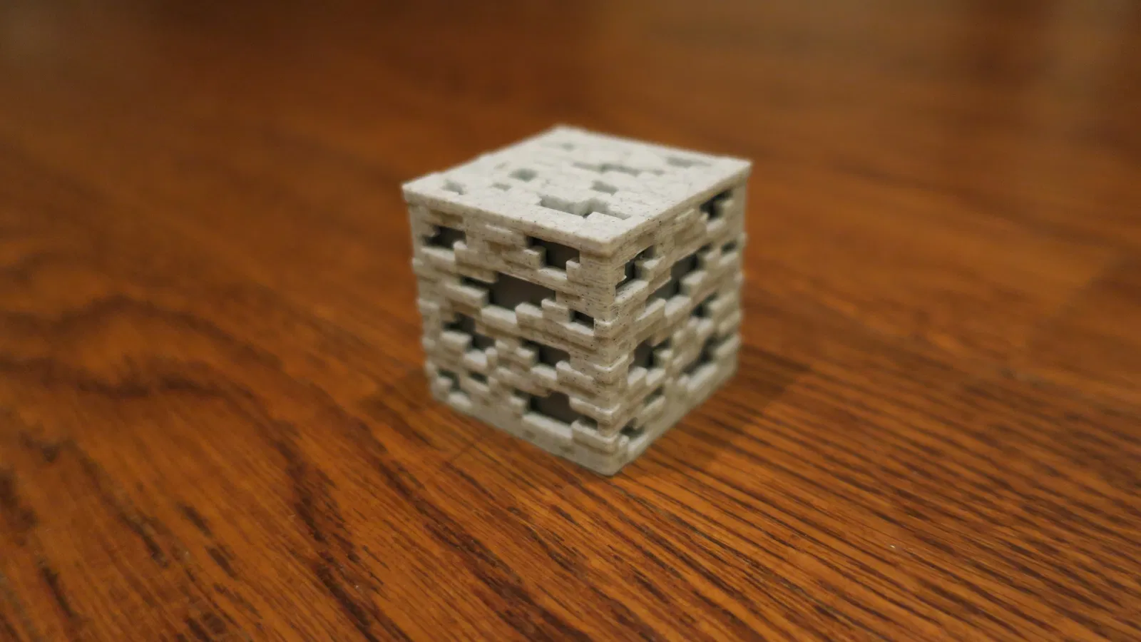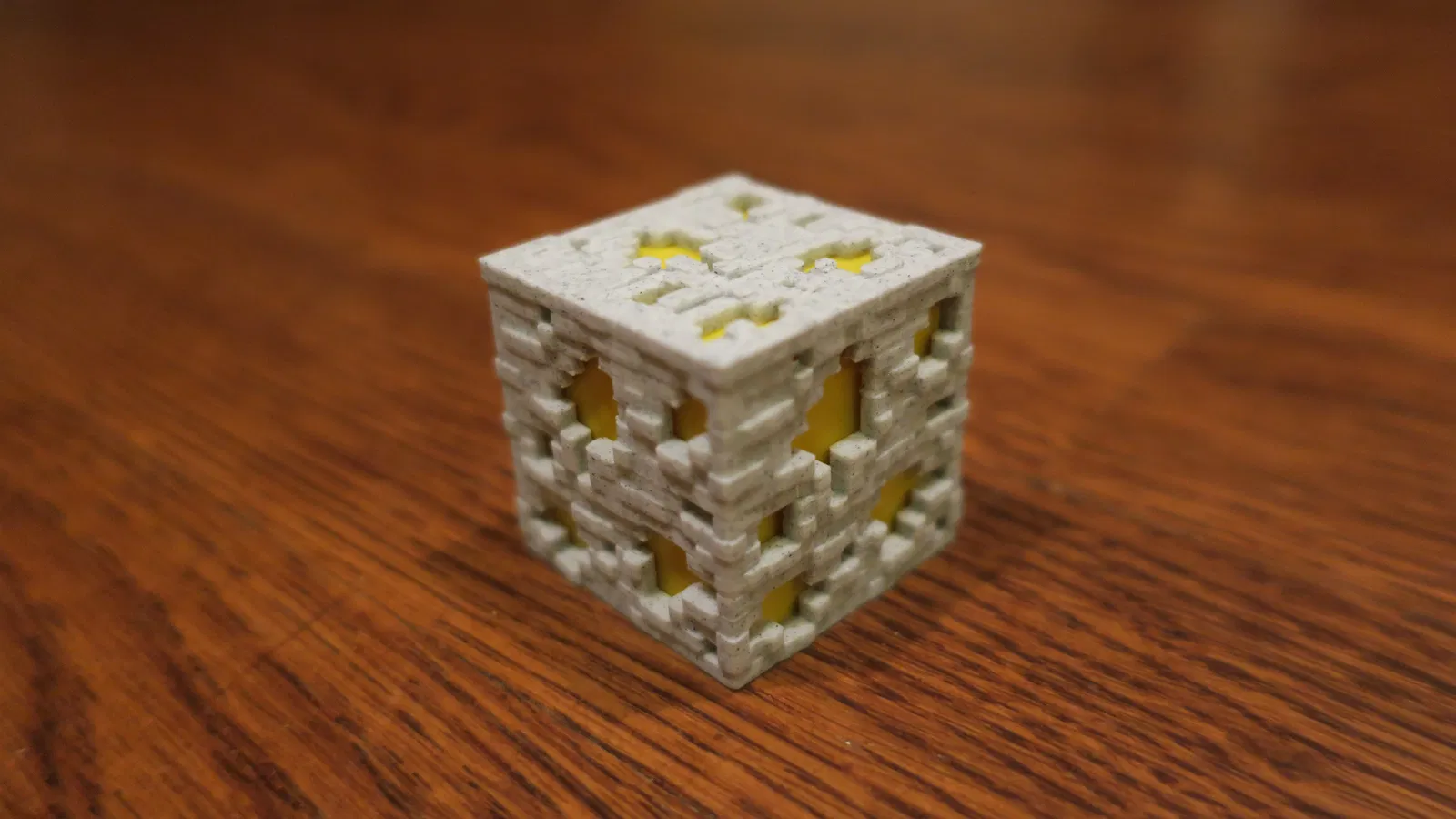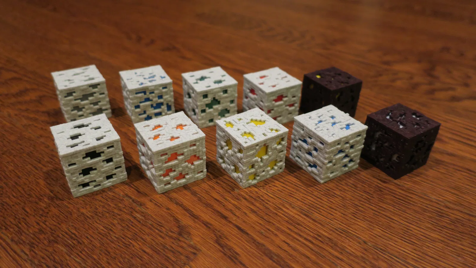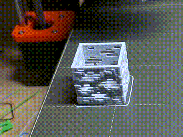 In phần quặng bên trong trước rồi lật ngược thả vào lớp vỏ ngoài khi tạm dừng in. Bộ sưu tập 3D Minecraft này không cần hỗ trợ, chỉ cần in lớp bên trong trước. Đã bao gồm file 3MF và STL có hỗ trợ hy sinh.