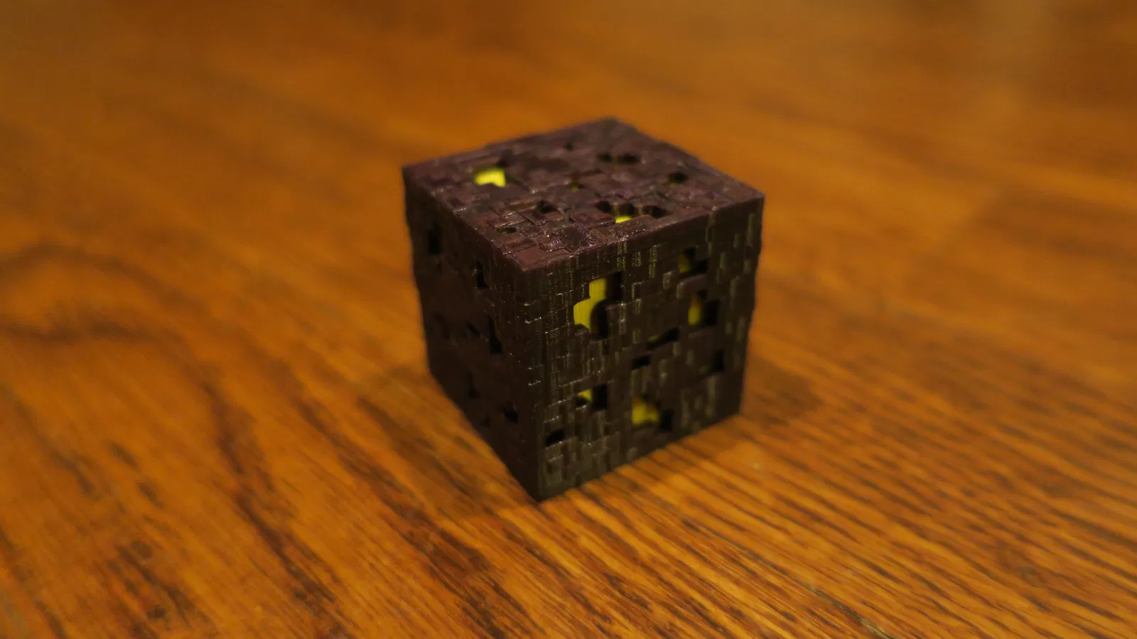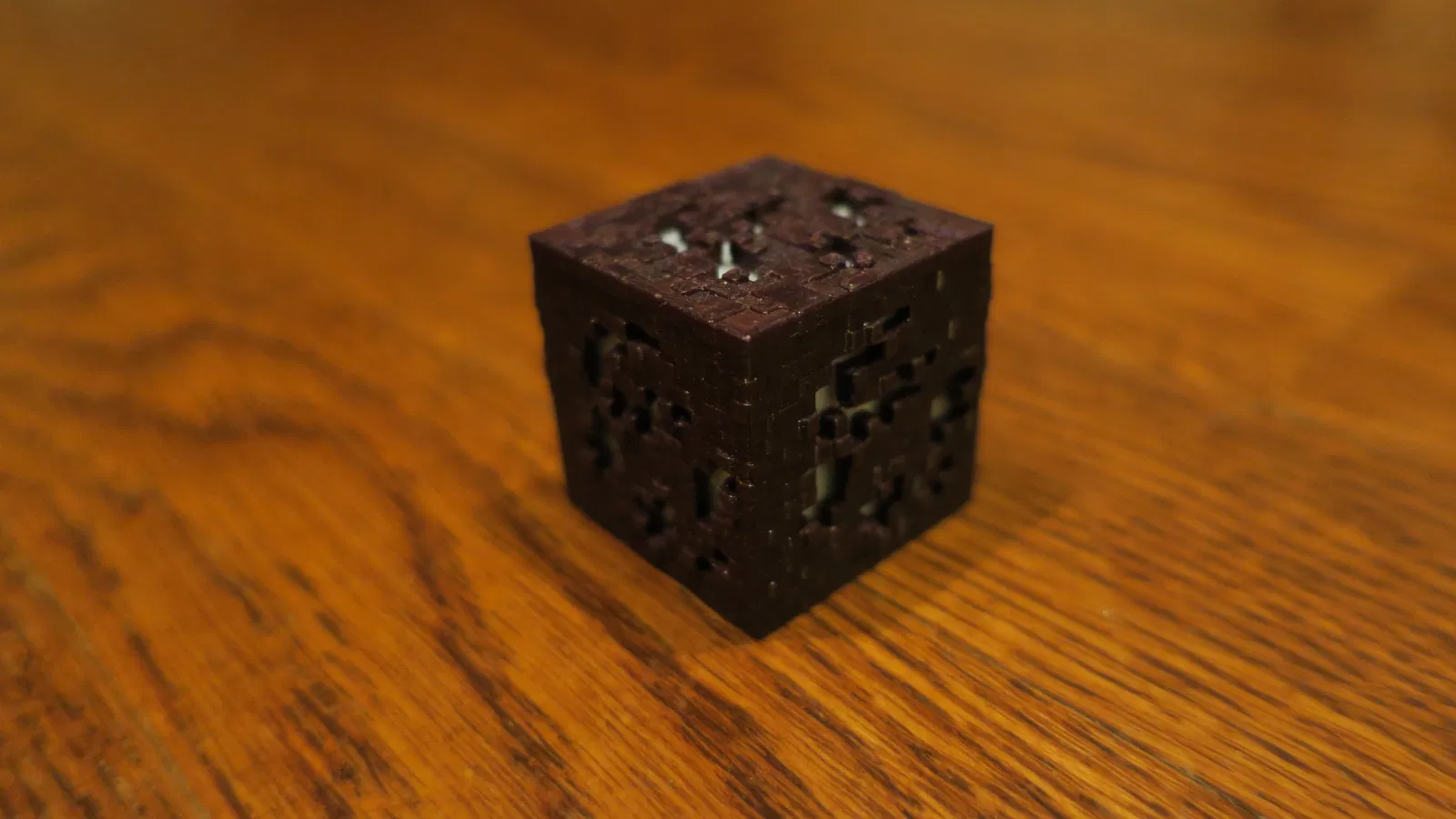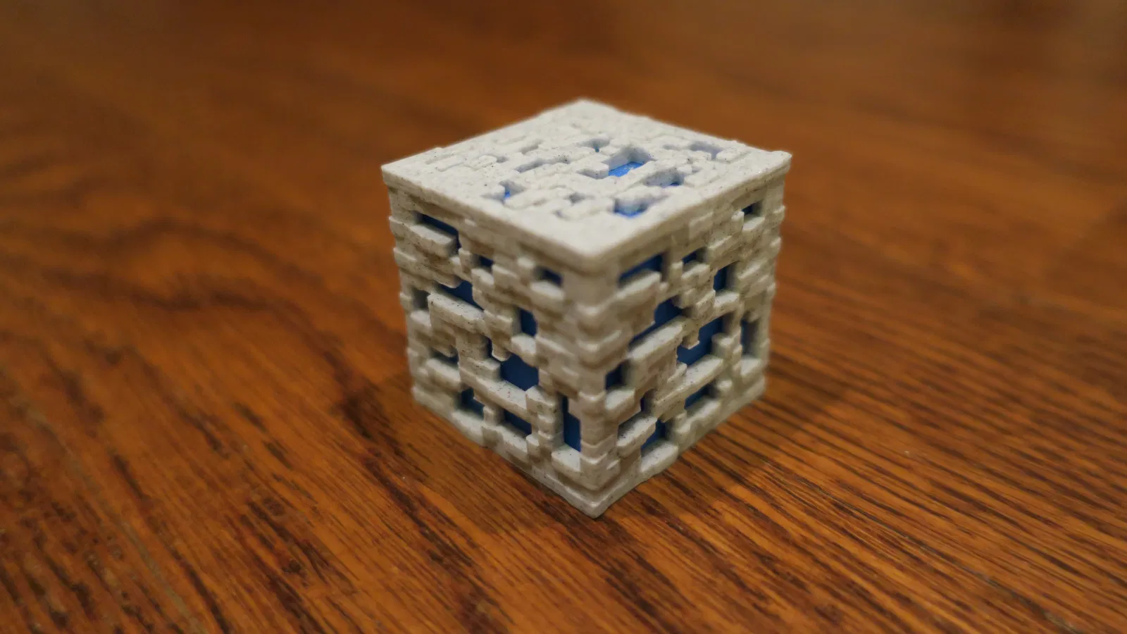 Tuyệt đối không bật hỗ trợ (supports), và bạn phải in phần quặng bên trong trước, vì bạn sẽ cần lật ngược nó lại và thả vào bên trong lớp vỏ ngoài trong lúc tạm dừng in. Nó đóng vai trò làm hỗ trợ cho toàn bộ phần trên của khối, và sẽ niêm phong nó vĩnh viễn bên trong.