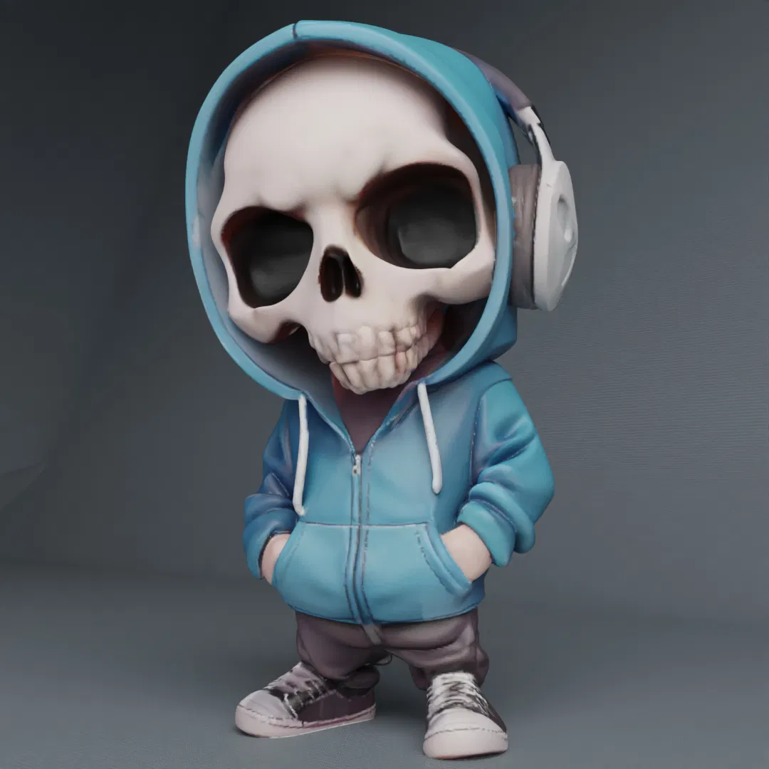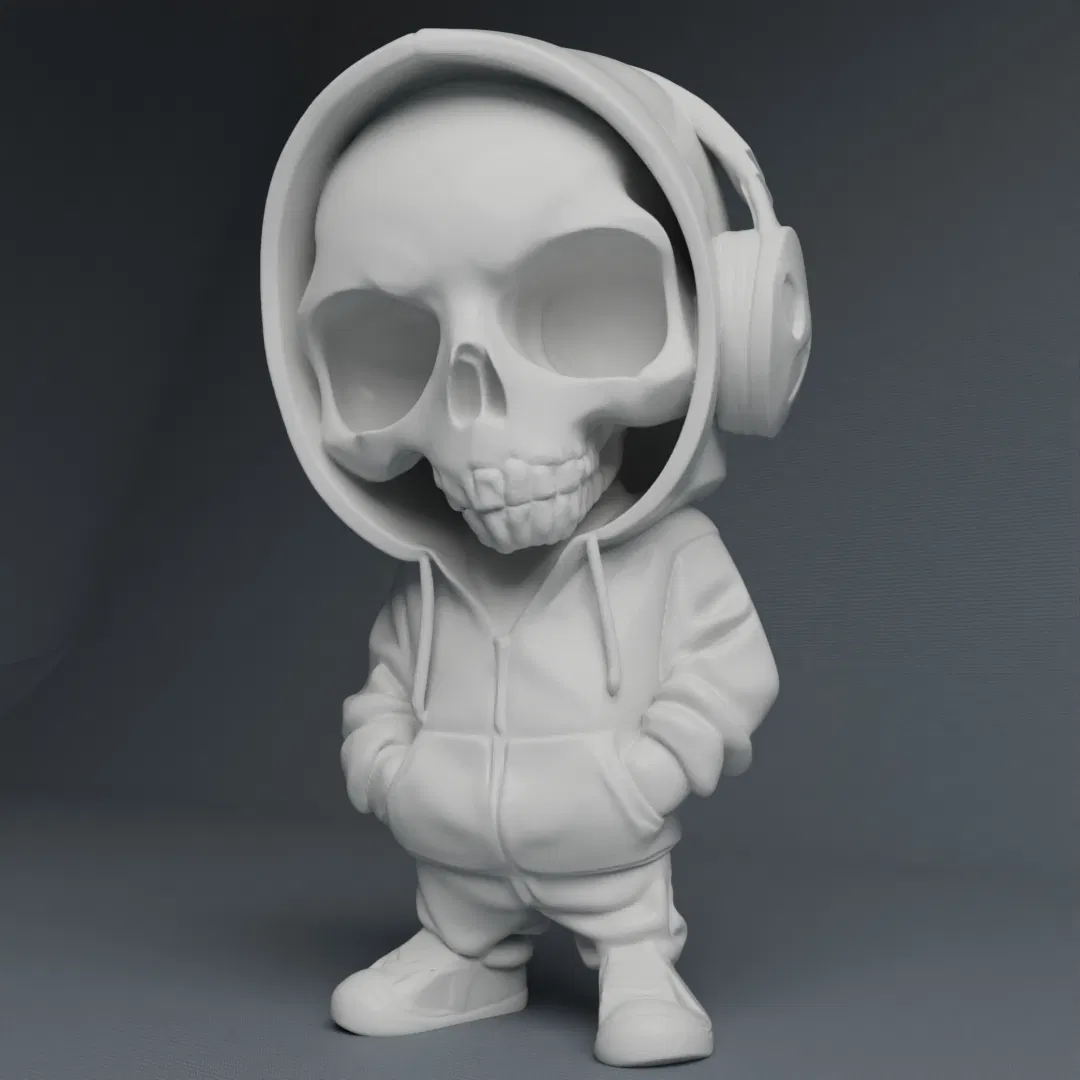 Đây là một mô hình điêu khắc Skull Hoody Boy cực ngầu với tai nghe.