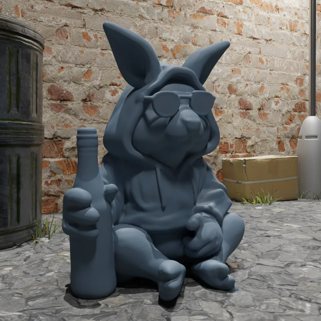 Một chú thỏ ngầu đội kính râm, được tạo ra một phần bằng AI và chỉnh sửa trong Blender. Thích hợp làm đồ trang trí Lễ Phục Sinh. Xem các mẫu thỏ khác của tui và thu thập hết nha!