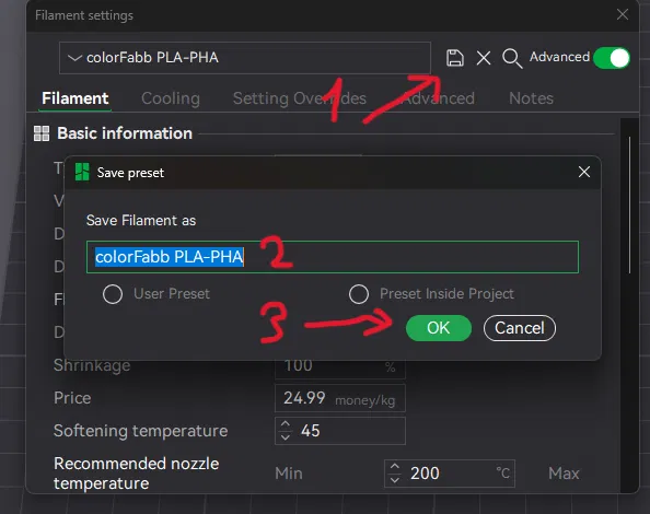 Do nhu cầu về profile cao nên tụi mình đã cố gắng làm ra một số profile cho Bambu Lab X1C, X1E và P1S. Xem hình ảnh để biết cách lưu profile.