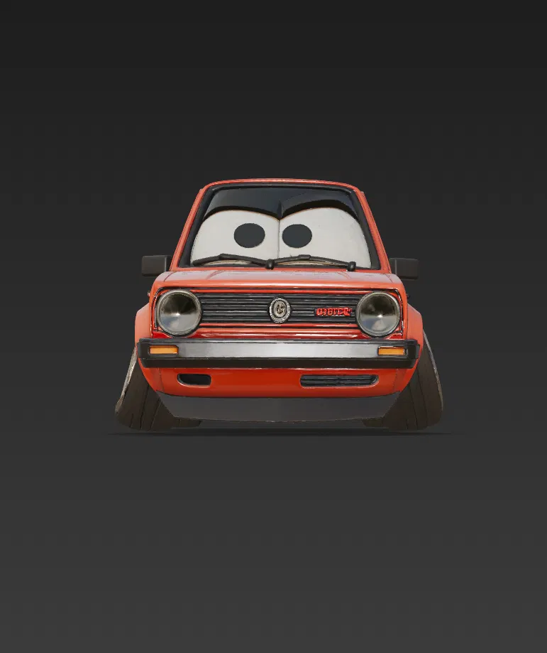 Chiếc xe hatchback cổ điển phiên bản hoạt hình siêu ngộ nghĩnh với mâm xe "béo ú" và đôi mắt biểu cảm! Mô hình 3D chi tiết, thích hợp làm đồ trang trí, quà tặng hoặc móc khóa.