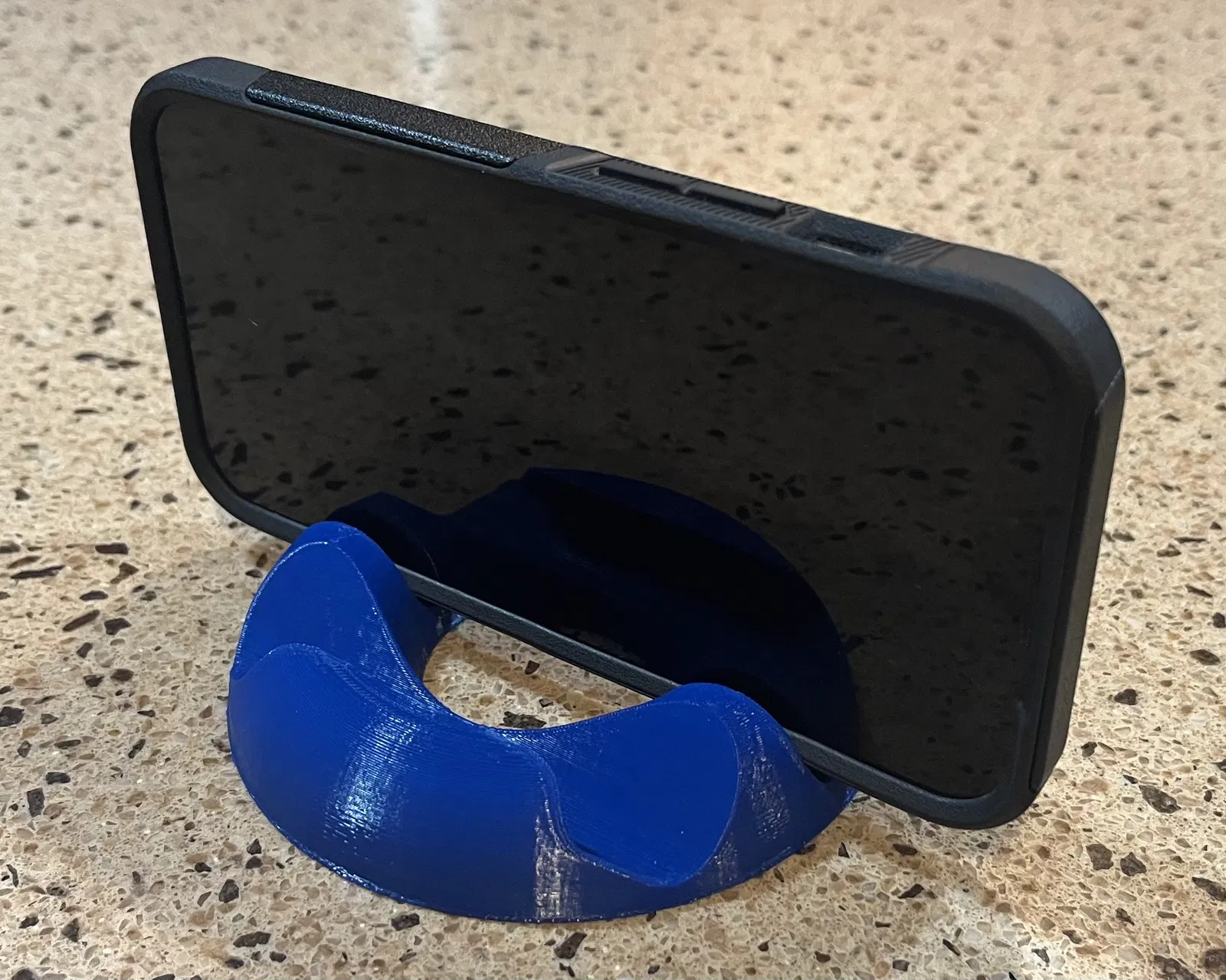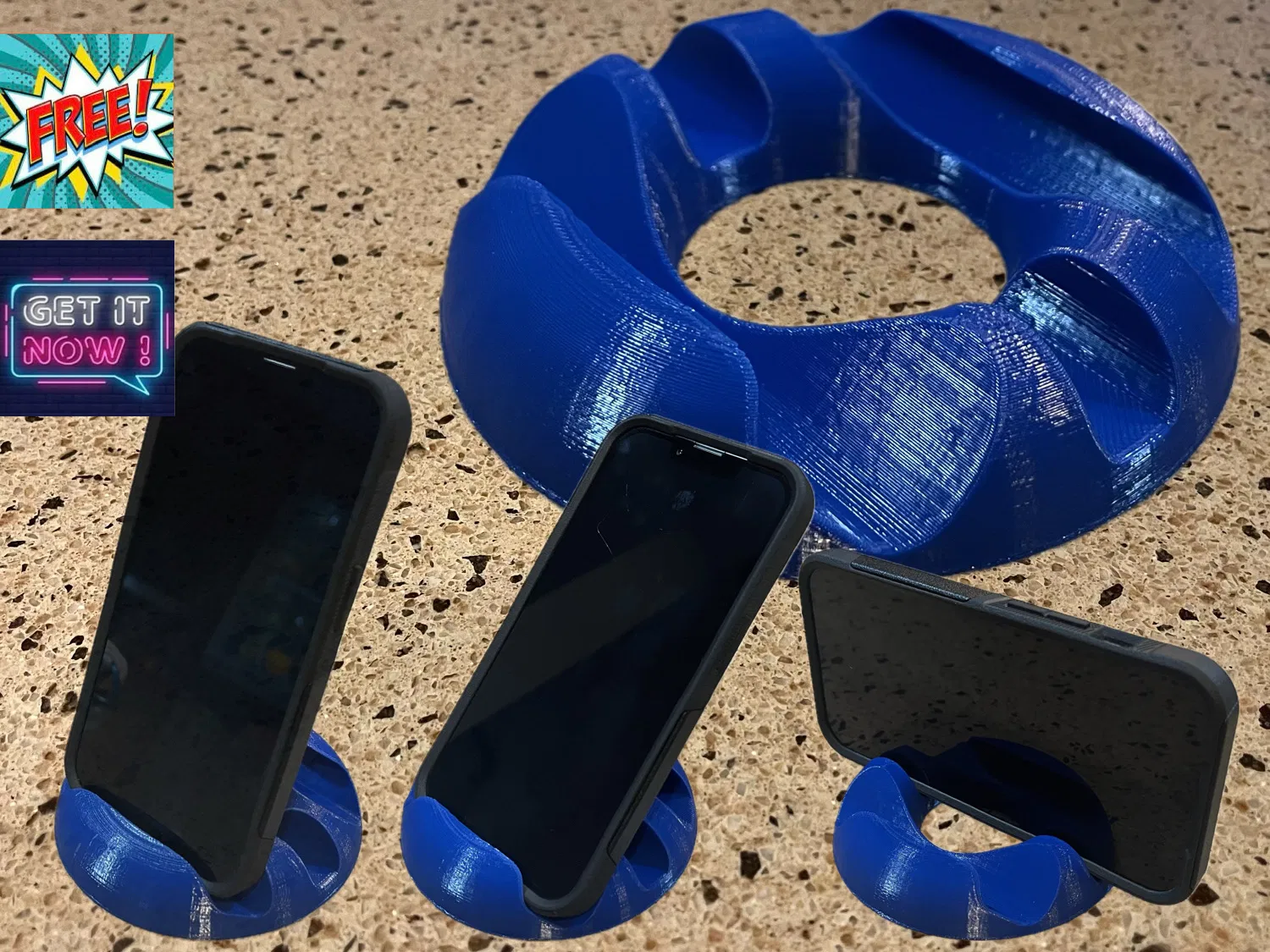 Phiên bản Donut Pro của giá đỡ điện thoại GoDonut, có thể giữ điện thoại hoặc máy tính bảng ở các góc 45, 70, hoặc 90 độ. Có phiên bản mỏng hơn, in nhanh hơn. Độ lấp đầy tối thiểu 20% để đảm bảo độ bền.