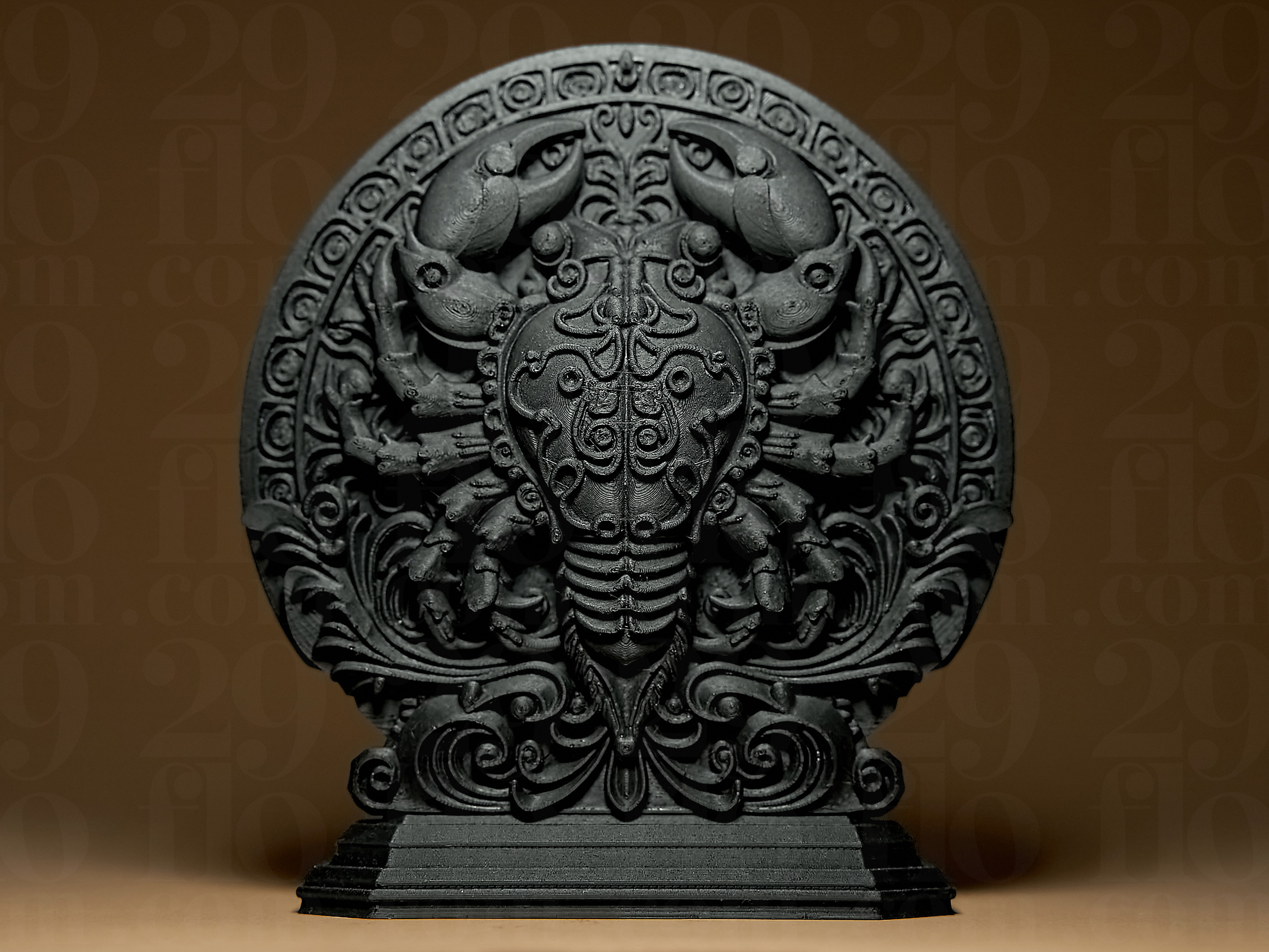 Bộ sưu tập tượng điêu khắc 12 cung hoàng đạo, với mẫu Cự Giải - Con Cua. Ảnh chụp thực tế mô hình in 3D. Bao gồm gợi ý cài đặt in và thông tin hỗ trợ tác giả qua Patreon.