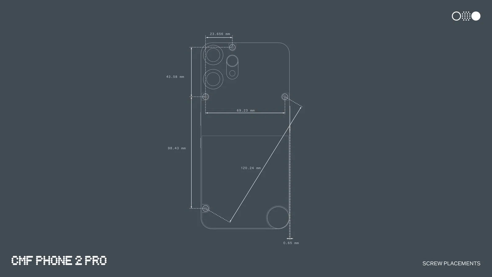Phần này được gắn vào mặt sau của CMF Phone 2 Pro bằng 4 vít M2 và Nắp điểm phụ kiện của chúng tôi (M2.5). Tìm kích thước thiết bị, cỡ vít và nhiều hơn nữa được tải lên để hỗ trợ sự sáng tạo của bạn!