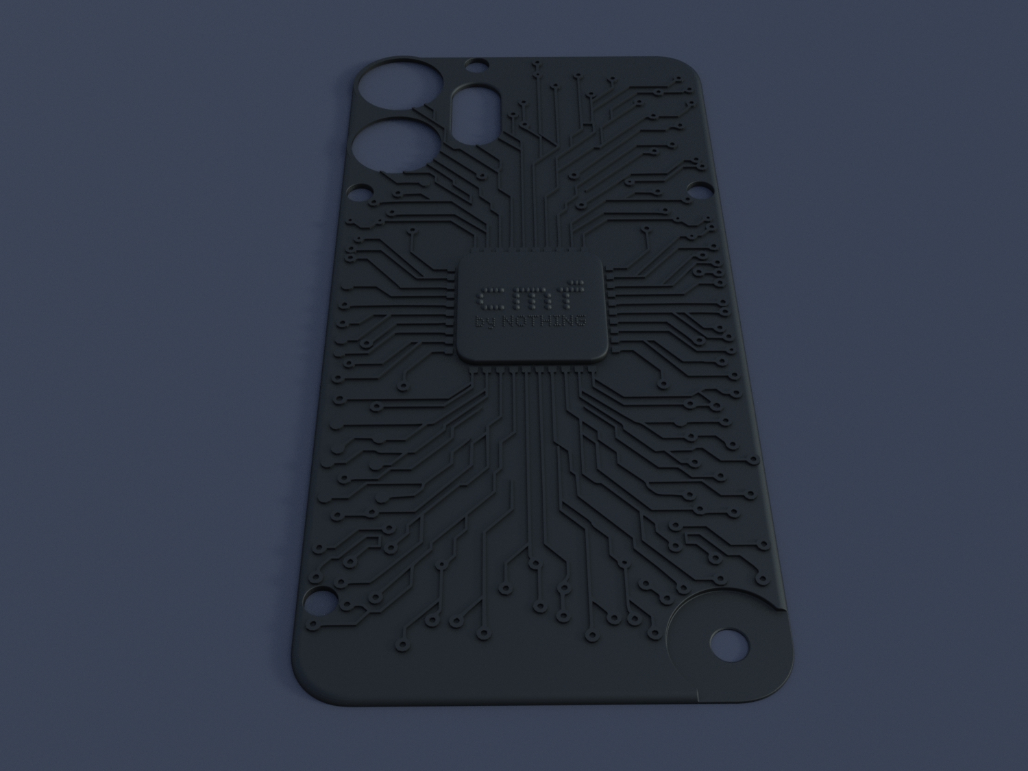Con chip, với logo "CMF by NOTHING" được dập nổi đầy tự hào, đóng vai trò là cốt lõi thị giác và khái niệm của sản phẩm. Các đường mạch góc cạnh tỏa ra từ đó theo một mẫu hình tối giản, có cấu trúc, gợi nhớ đến kiến trúc bên trong của thiết bị.