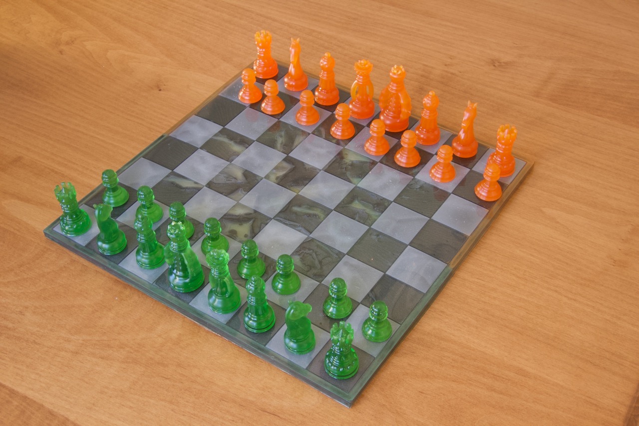 Bộ cờ vua in bằng nhựa resin có bán tại trang web sau: