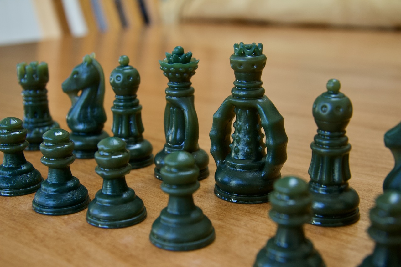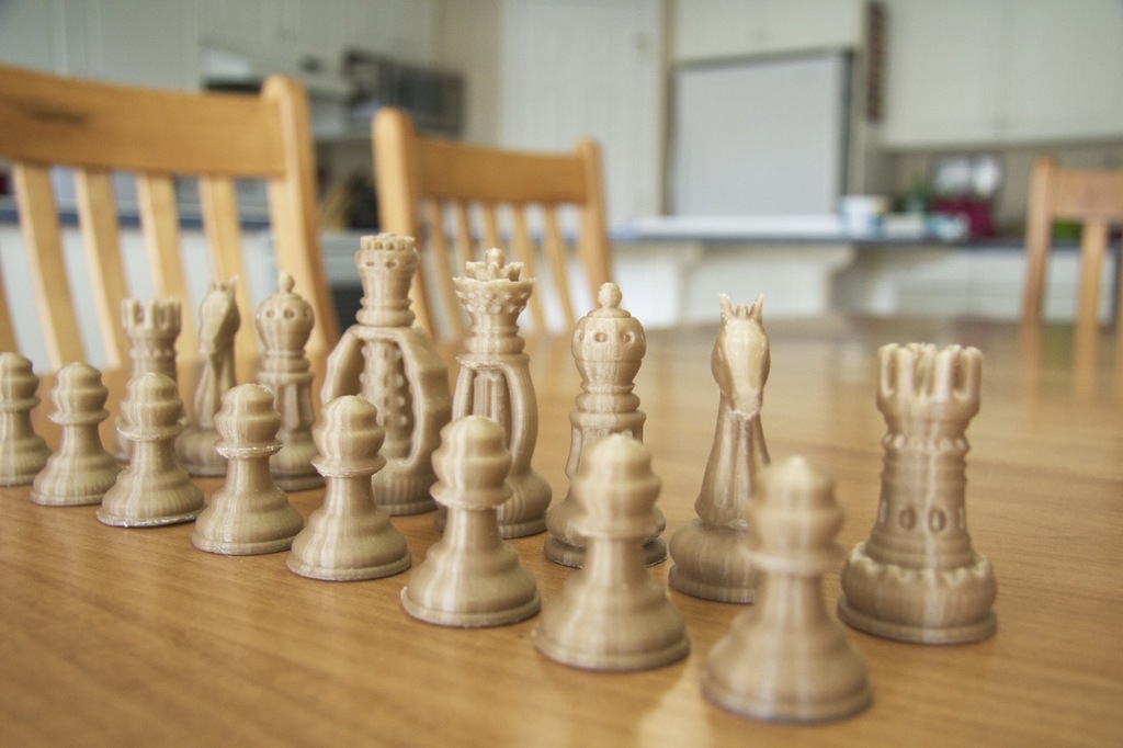 Mâm in phải được cân bằng hoàn hảo để in cả bộ quân cờ cùng lúc. Các chi tiết sẽ đẹp hơn khi in với kích thước lớn hơn. Cứ chỉnh kích thước cho vừa với bàn cờ nha. Mô hình có độ phân giải cao nên máy in của bạn sẽ cho ra nhiều chi tiết hơn. Có thể bạn sẽ cần chỉnh lại kích thước và vị trí của bộ cờ trên mâm in. Có một con ngựa/mã được thiết kế kèm sẵn đế đỡ và một con không có đế đỡ. Con có đế đỡ được tạo ra để in trên máy in kiểu extruder mà không cần thêm đế đỡ. Dĩ nhiên, bạn phải in một bộ một màu và bộ kia một màu khác. Bàn cờ không đi kèm.