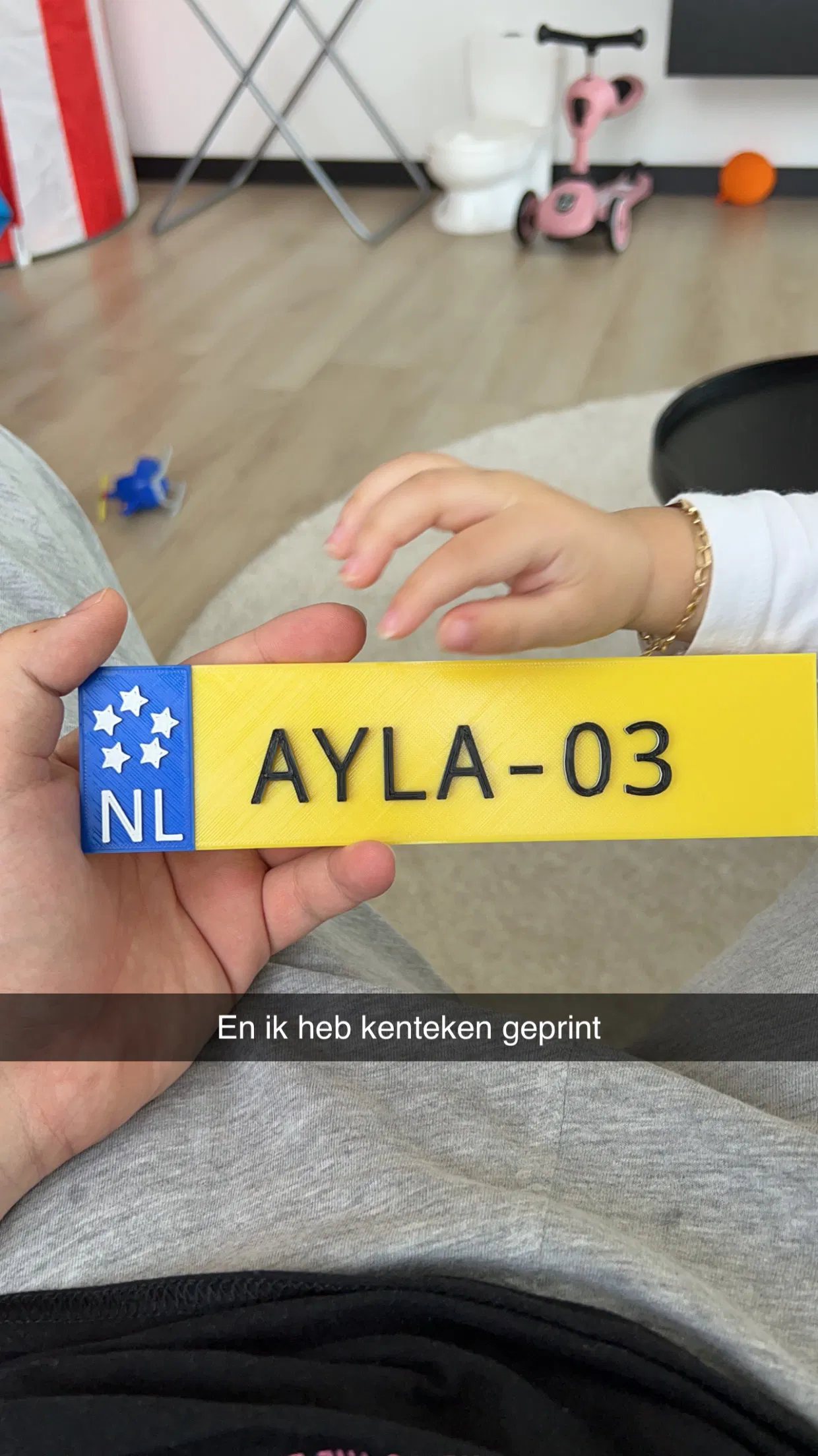 Biển số xe Hà Lan, được làm trên Tinkercad cho con gái. Có hai phiên bản: một với tên