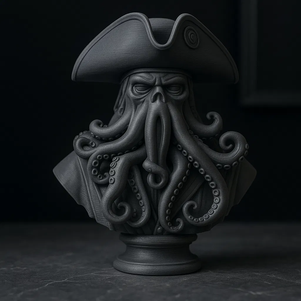 Tác phẩm điêu khắc hình dáng bust ấn tượng này lấy cảm hứng từ hình ảnh mang tính biểu tượng của một thuyền trưởng cướp biển bị nguyền rủa với khuôn mặt xúc tu – nổi tiếng trong một câu chuyện phiêu lưu ăn khách. Nhân vật này kết hợp nét thanh lịch hàng hải với sự huyền bí tăm tối: chiếc mũ ba tiêu đặc trưng, cấu trúc xúc tu phức tạp và ánh mắt nghiêm nghị mang lại cho nó một vẻ ngoài độc đáo, gần như hoàng gia.