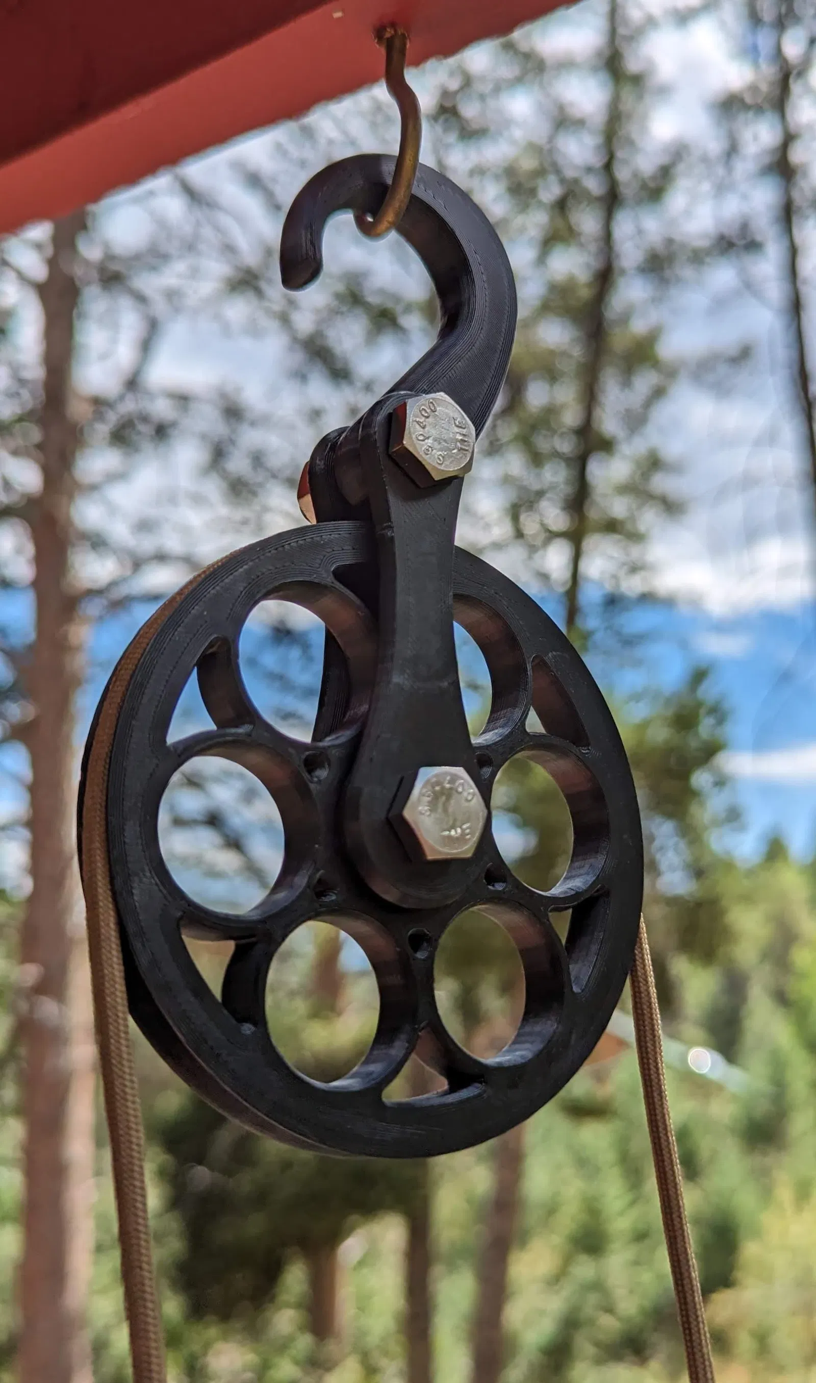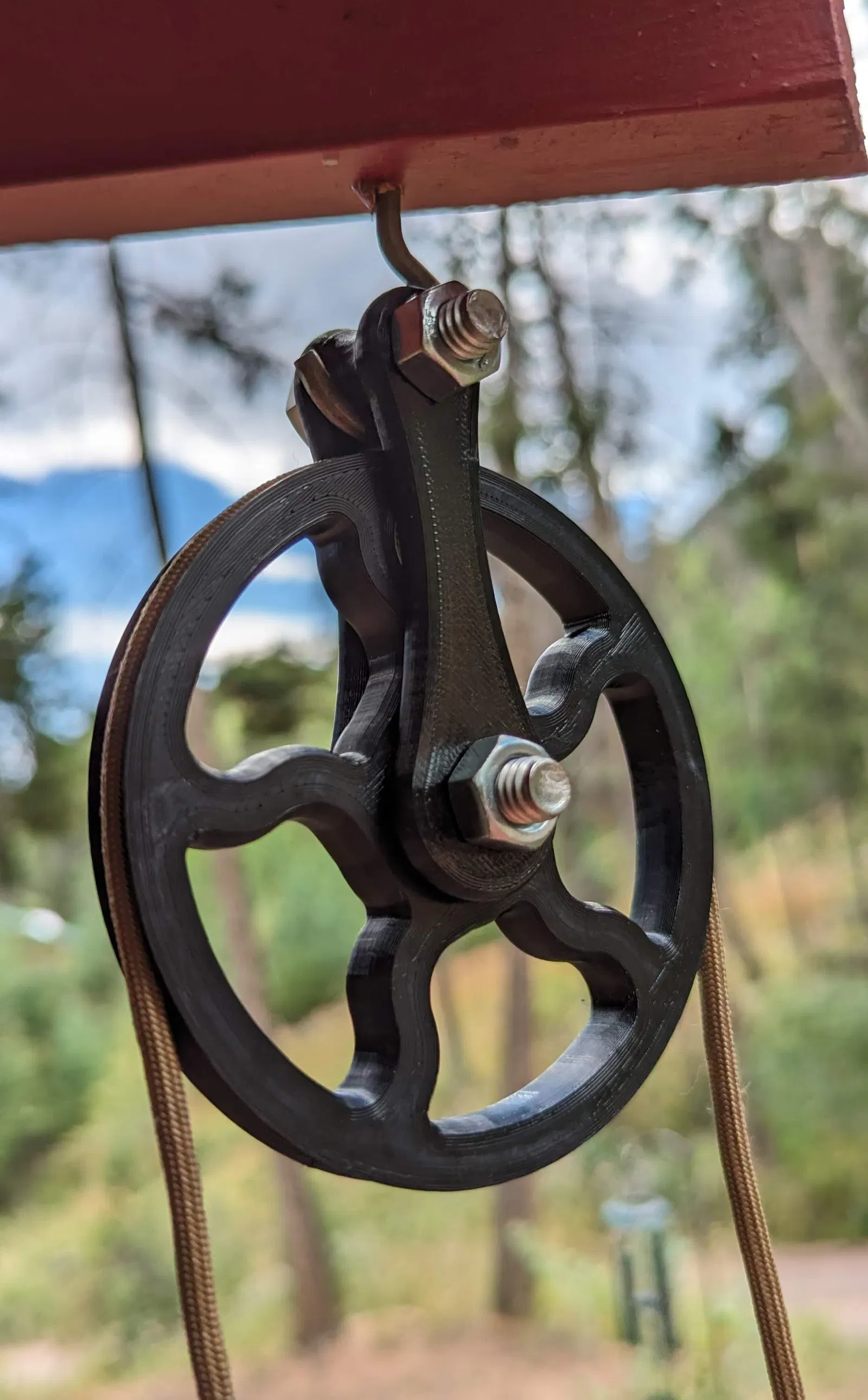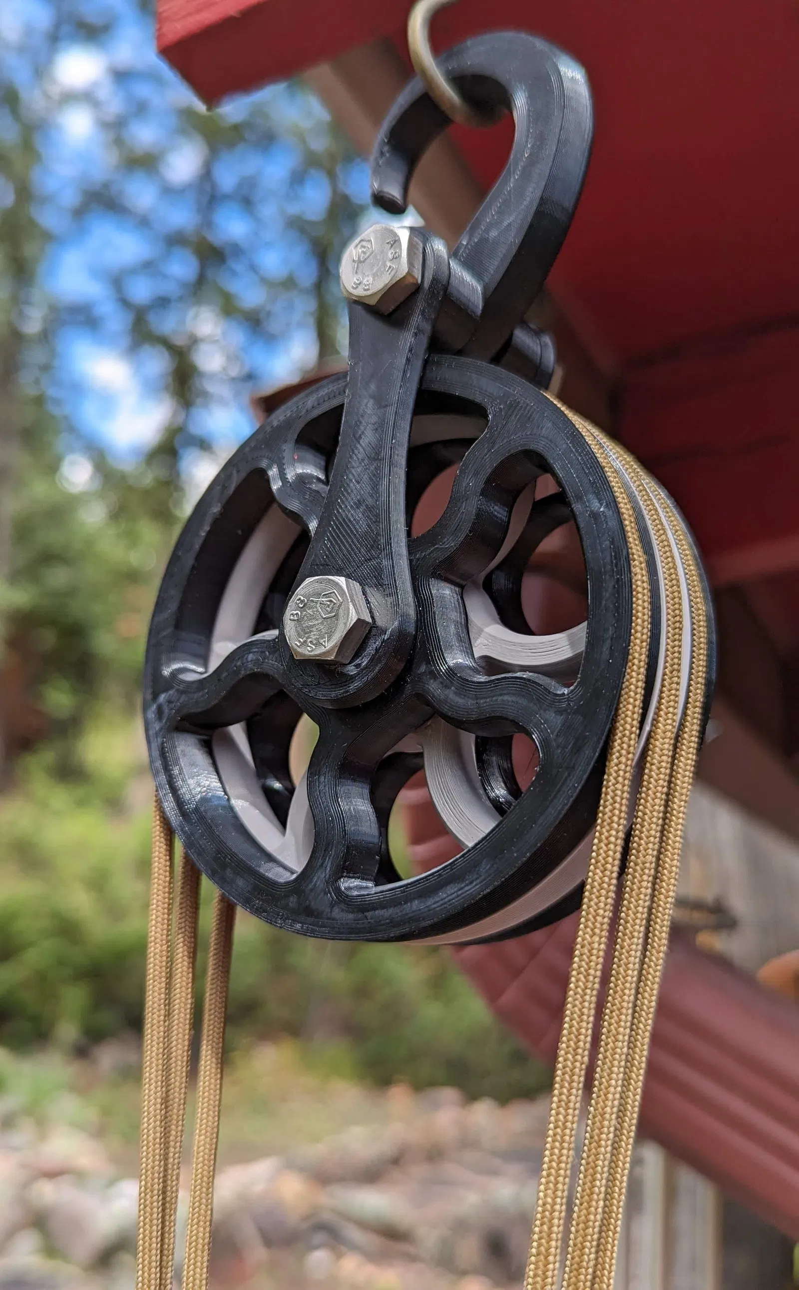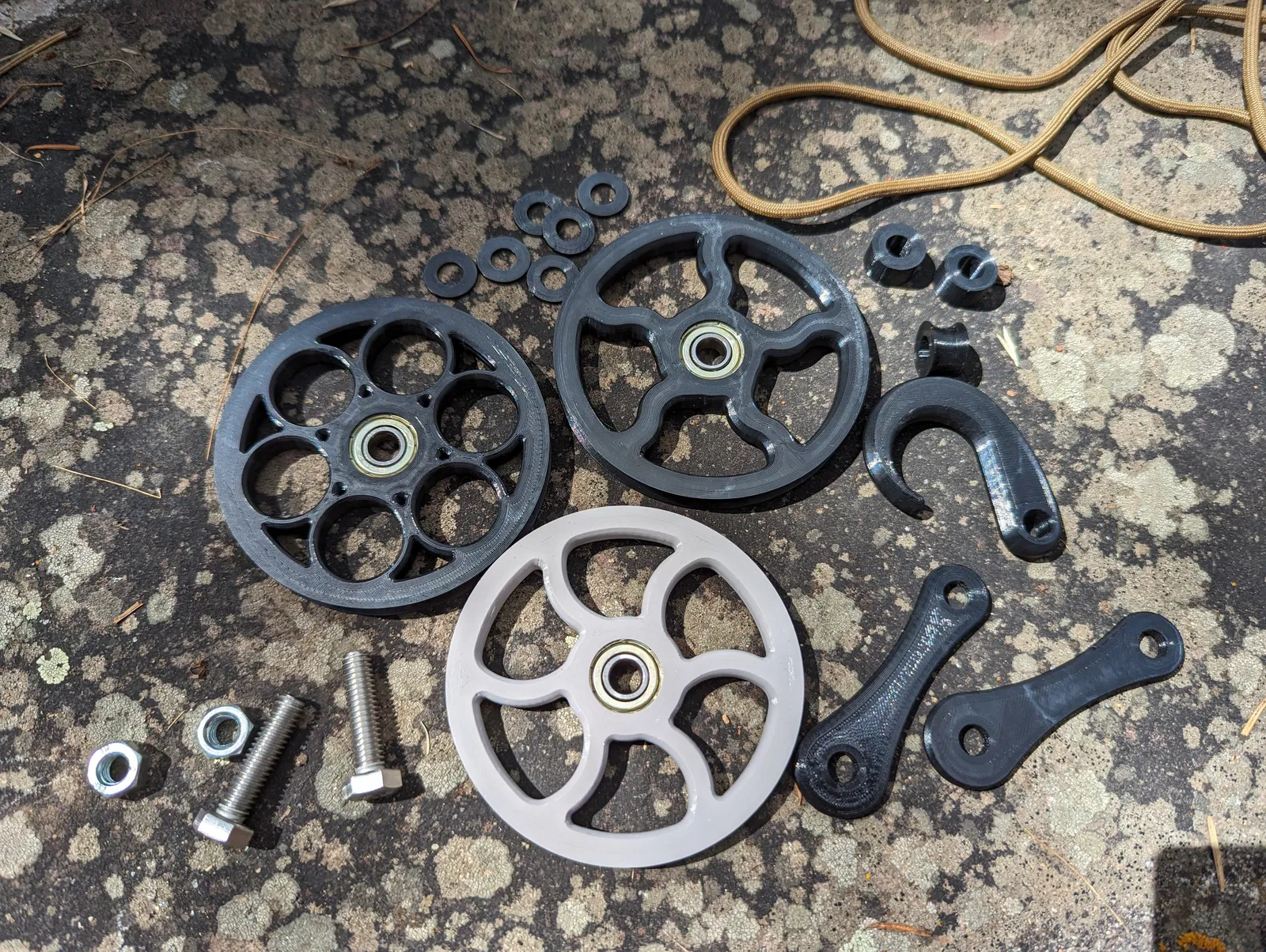 Lấy cảm hứng từ những puli gang cũ, đây là một hệ thống puli dạng module, có tính trang trí, xếp chồng lên nhau và dùng cho dây dù paracord. Một vòng bi skate cỡ 8x22x7 mm sẽ ép vừa vào giữa puli. Bu lông 5/16" hoặc 8mm dùng để ghép các bộ phận lại với nhau; hai cái cho khung đơn giản và bốn cái cho khung đầy đủ, chiều dài tùy thuộc vào số lượng puli xếp chồng.