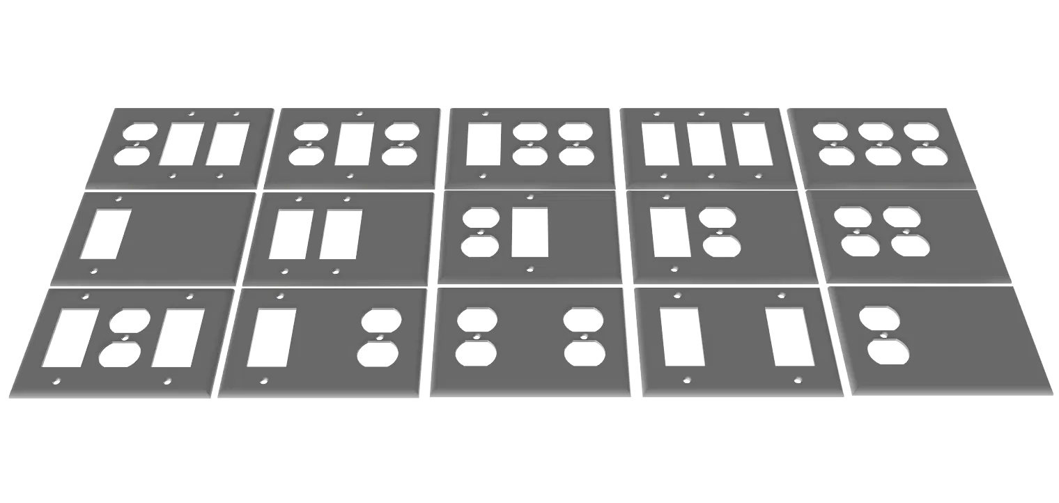 Dễ dàng thay thế nắp ổ cắm cũ, hỏng bằng tấm ốp tường 3D DecoEdge cho ổ cắm duplex và GFCI. In chỉ dưới $1, không cần hỗ trợ, phù hợp với mọi nhà. Có sẵn các loại 1, 2, 3 modul.
