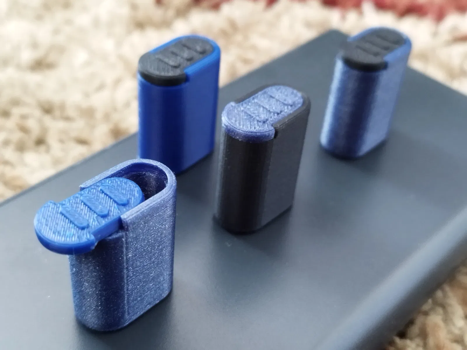 Hộp đựng thuốc mini, đựng được hai viên nang cỡ 00. Nắp hộp giữ chặt bằng ma sát, kích thước 2.0 cm x 1.2 cm x 2.7 cm. Lý tưởng để mang theo thuốc khi đi ra ngoài mà không cồng kềnh.